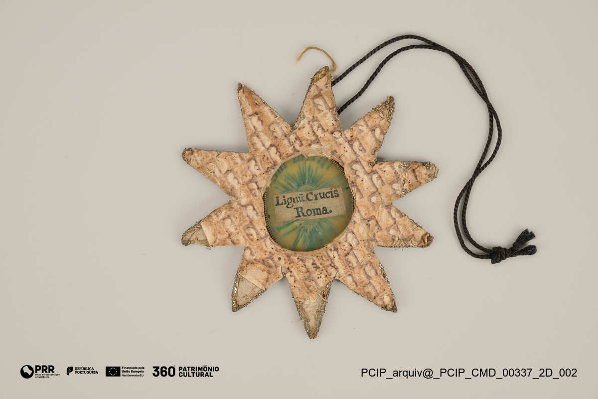 Matéria/Técnica: Cartão, papel, metal, mica, madeira; Cronologia: XVIII; Autoria: Desconhecida; Dimensões: Altura: 14,5 cm; Largura: 13,5 cm; Profundidade: 0,5 cm.