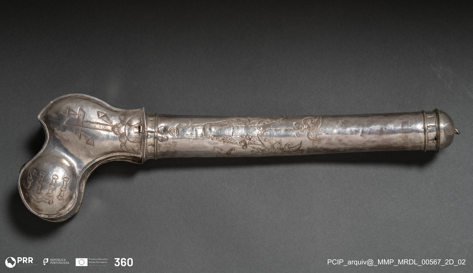 Matéria/Técnica: Prata, Osso; Cronologia: Desconhecida; Autoria: Desconhecida; Dimensões: Comprimento: 35,70 cm.