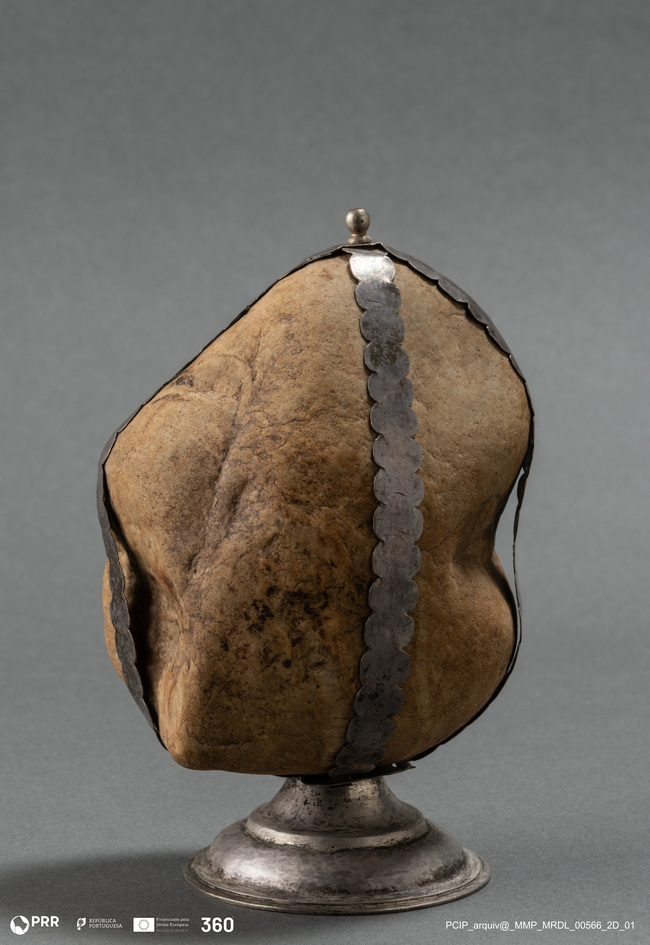 Matéria/Técnica: Prata, Pedra Calcário; Cronologia: Autoria: Desconhecida; Dimensões: Altura: 15,10 cm.
