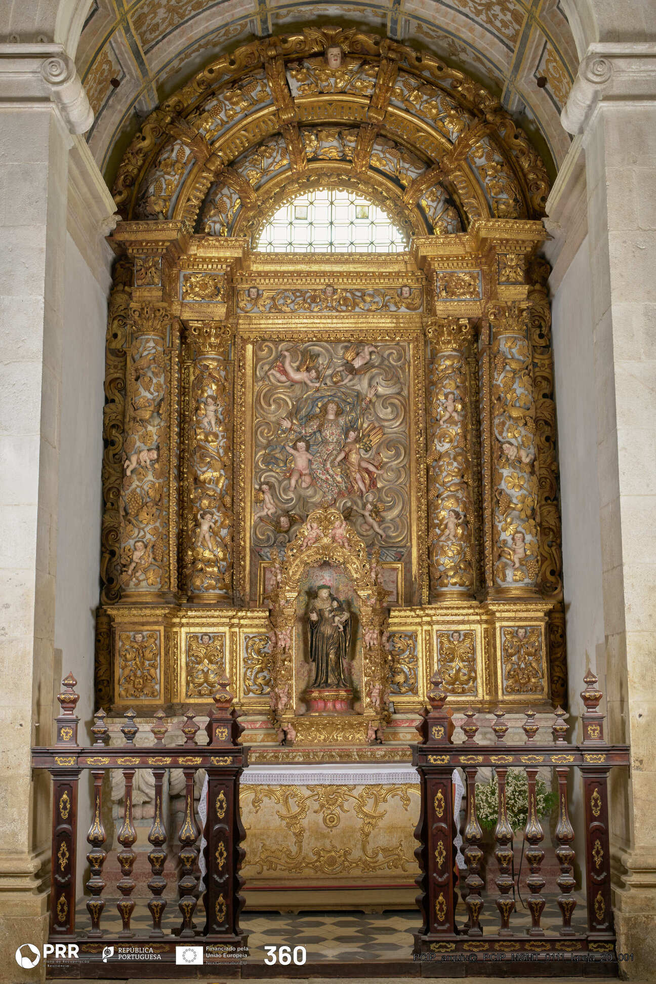 Matéria/Técnica: Madeira entalhada e dourada / Entalhamento e douramento; Cronologia: 1692-1695; Autoria: Frei Cipriano da Cruz; Dimensões (cm): 640 x 456 x 66.