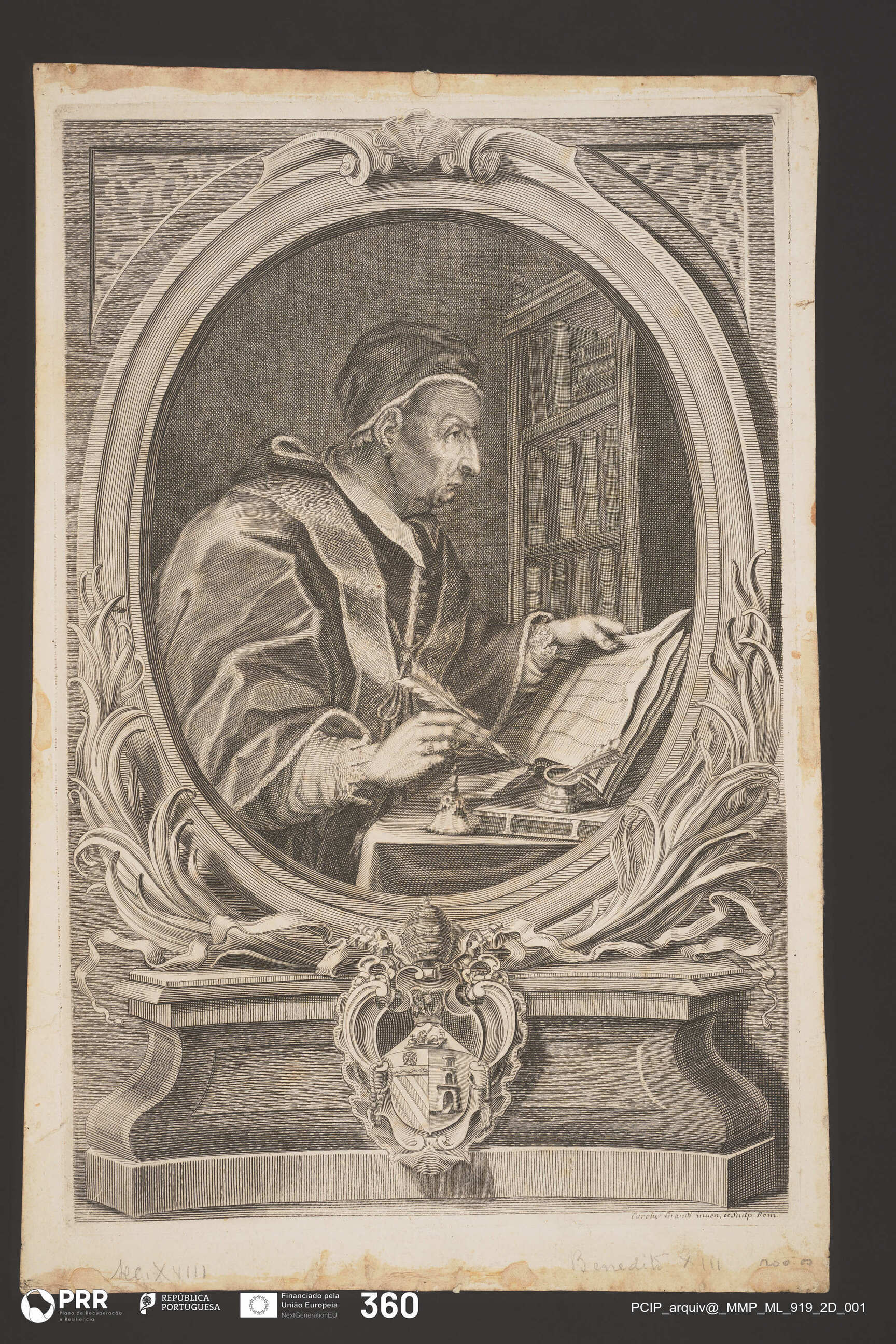 Matéria/Técnica: Desconhecida; Cronologia: Século XVIII; Autoria: Carolus Granch; Dimensões (cm): Altura: 38,5 x Largura: 25.