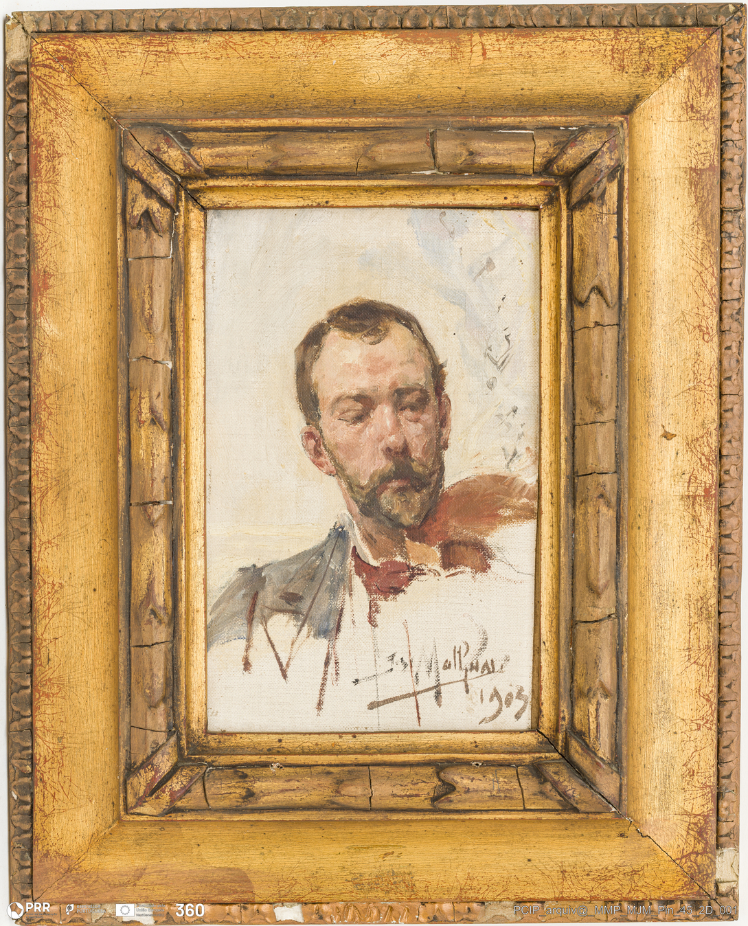 Matéria/Técnica: Óleo sobre tela; Cronologia: 1905; Autoria: José Malhoa (1855-1933); Dimensões: 23 x 14 cm.