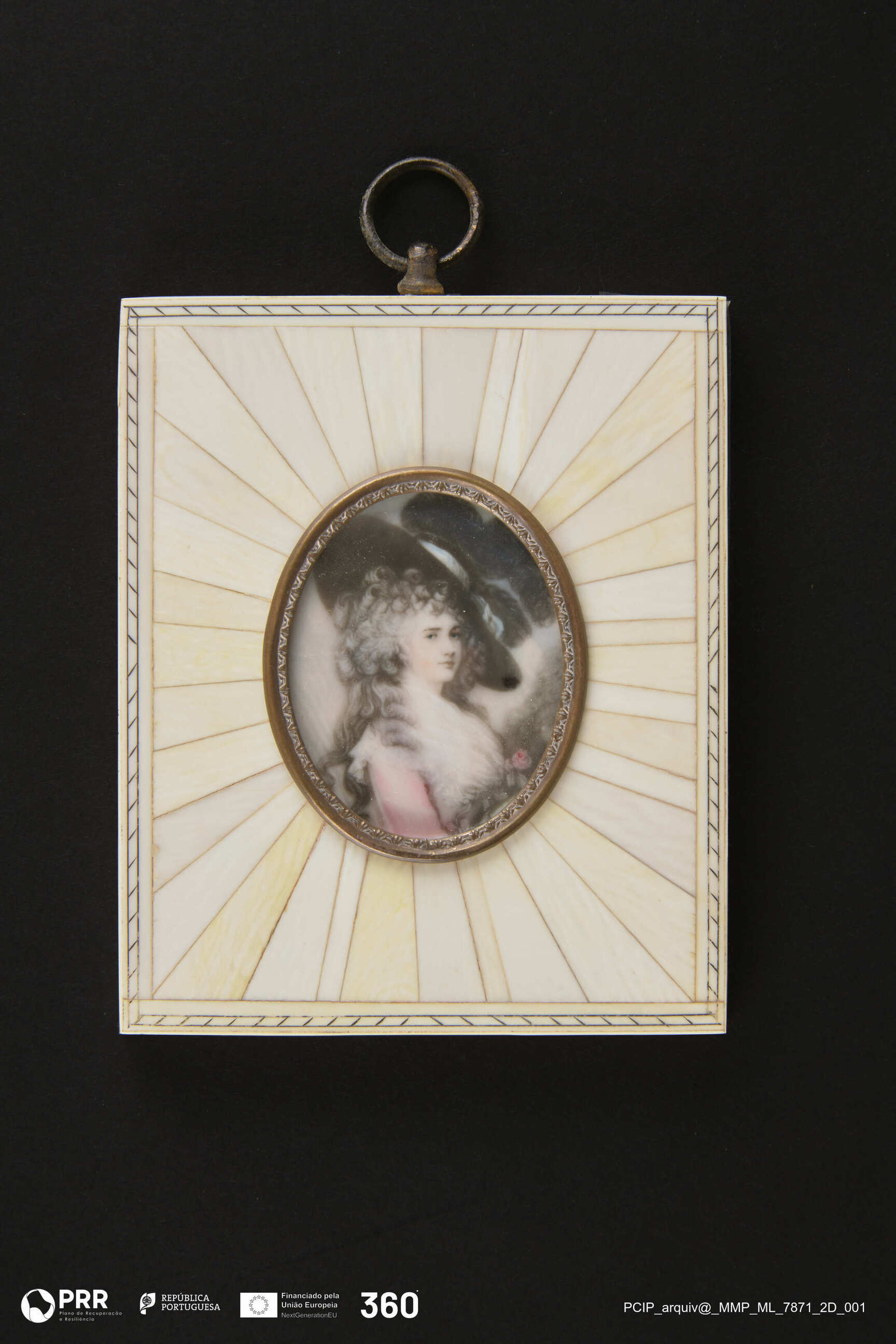 Matéria/Técnica: Óleo sobre marfim; Cronologia: Desconhecida; Autoria: Desconhecida; Dimensões (cm): Altura: 5 x Largura: 3,8.