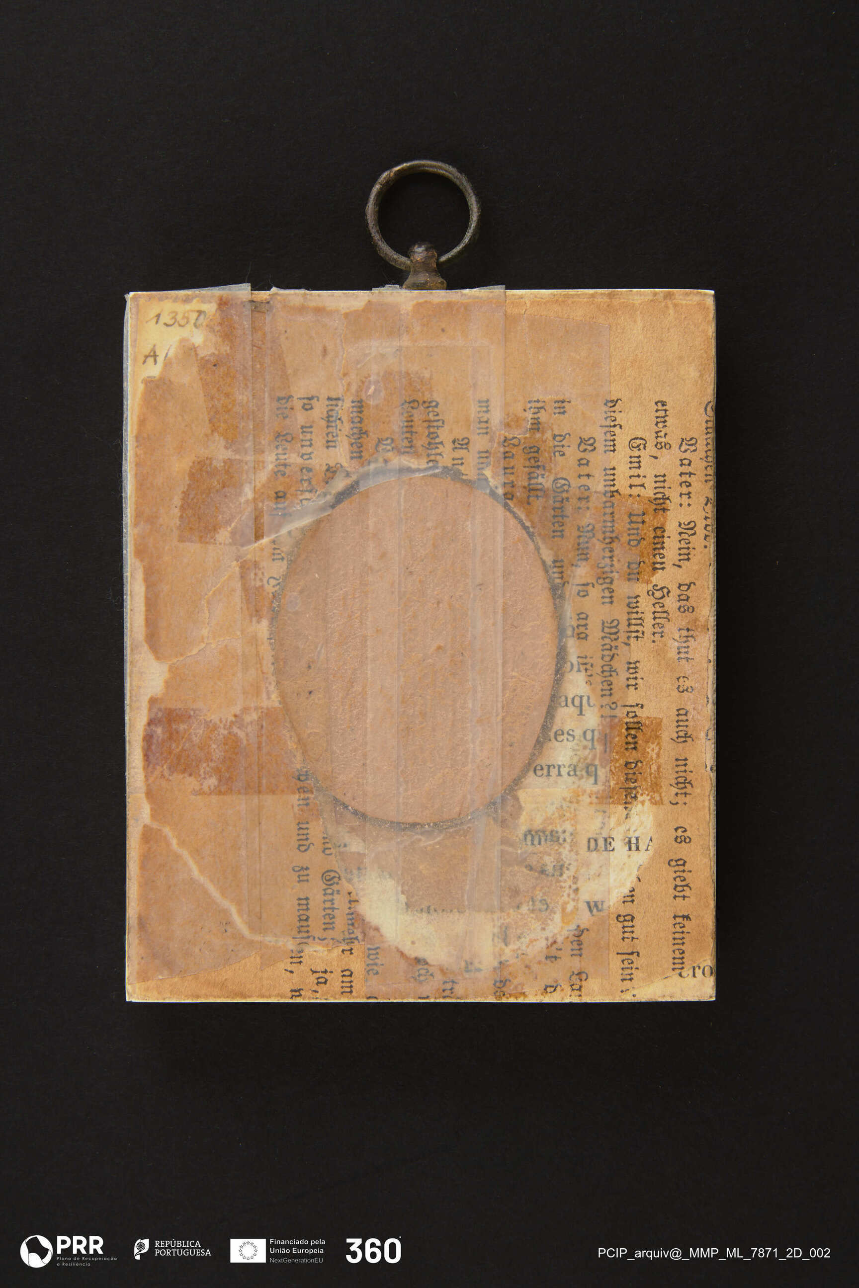 Matéria/Técnica: Óleo sobre marfim; Cronologia: Desconhecida; Autoria: Desconhecida; Dimensões (cm): Altura: 5 x Largura: 3,8.