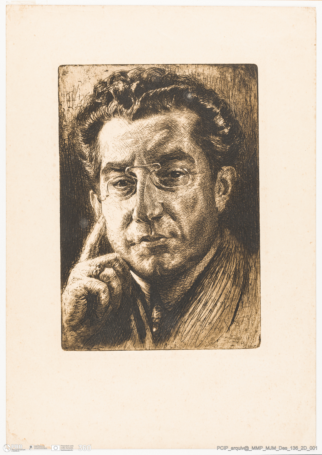 Matéria/Técnica: Tinta da China sobre papel; Cronologia: Desconhecida; Autoria: Sousa Lopes; Dimensões: 36,7 x 25,54 cm.
