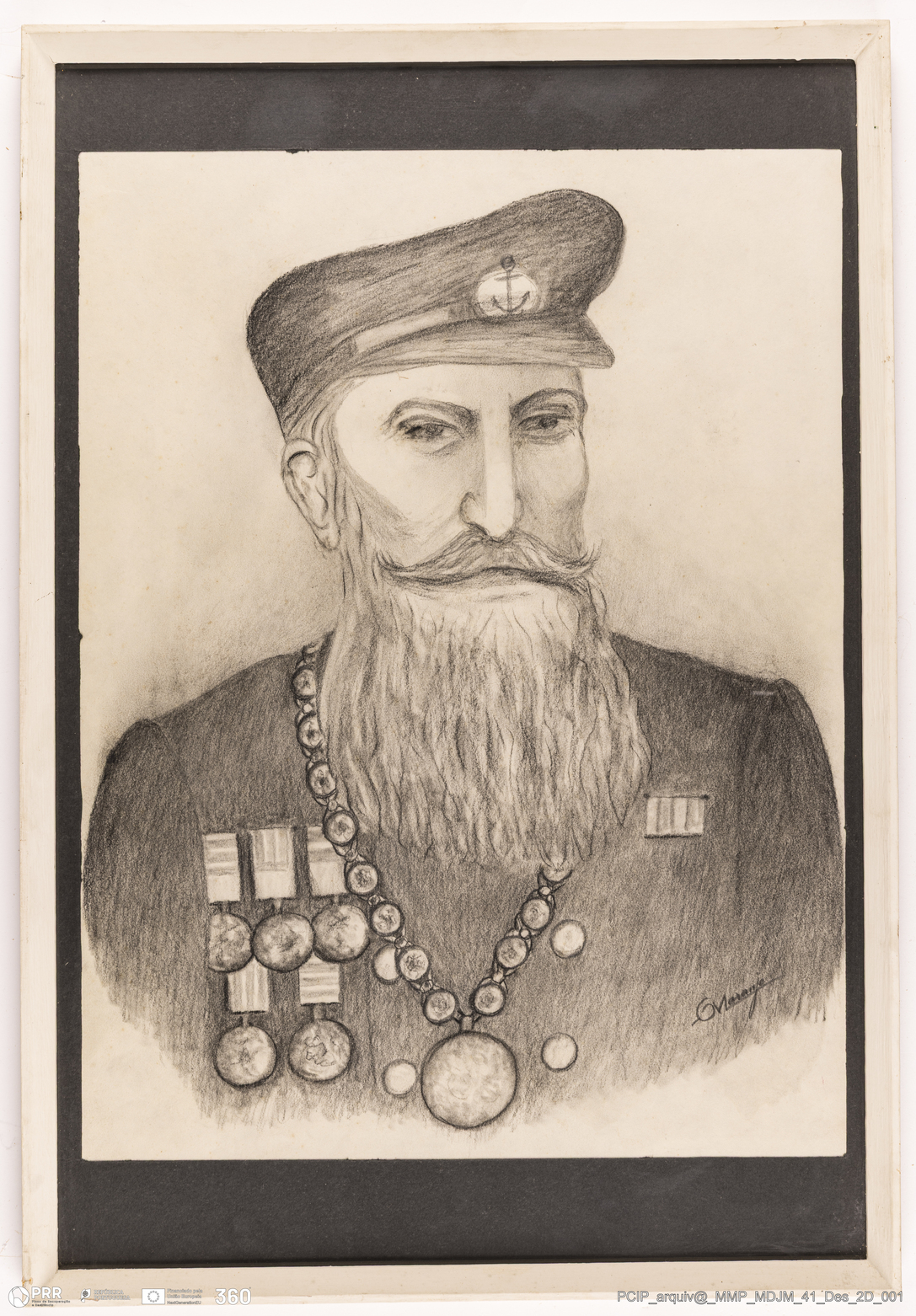 Matéria/Técnica: Carvão sobre papel; Cronologia: Séc. XX; Autoria: Antonio Vitorino Laranjo; Dimensões: Altura: 61 cm x Largura: 43 cm.