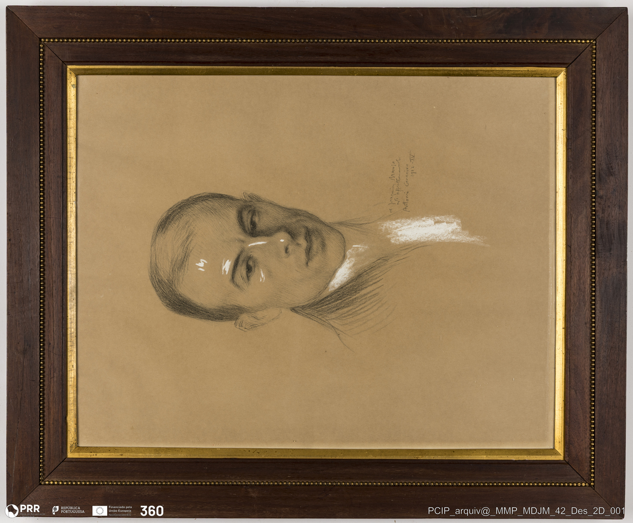 Matéria/Técnica: Carvão sobre papel; Cronologia: 1912; Autoria: António Teixeira Carneiro Júnior; Dimensões: Altura: 58,5 cm x Largura: 45,5 cm.