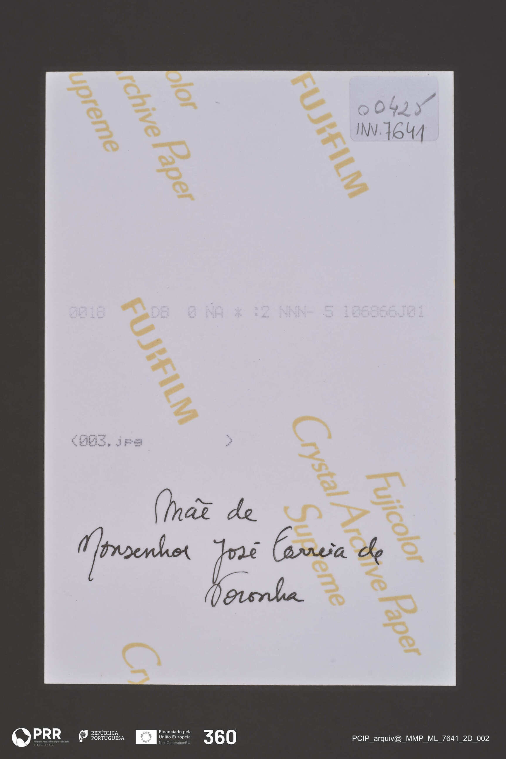 Matéria/Técnica: Gelatina / sal de prata; Cronologia: Desconhecida; Autoria: desconhecido; Dimensões (cm): Altura: 7,5 cm x Largura: 5 cm.