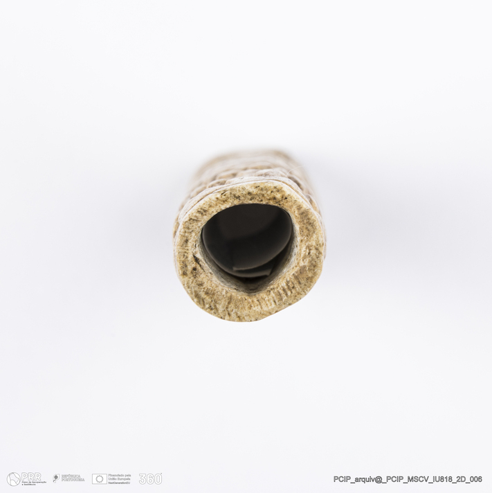 Matéria/Técnica: Osso (?); Cronologia: Século XVII; Autoria: Desconhecida; Dimensões: Comprimento: 65mm; Largura: 14mm.