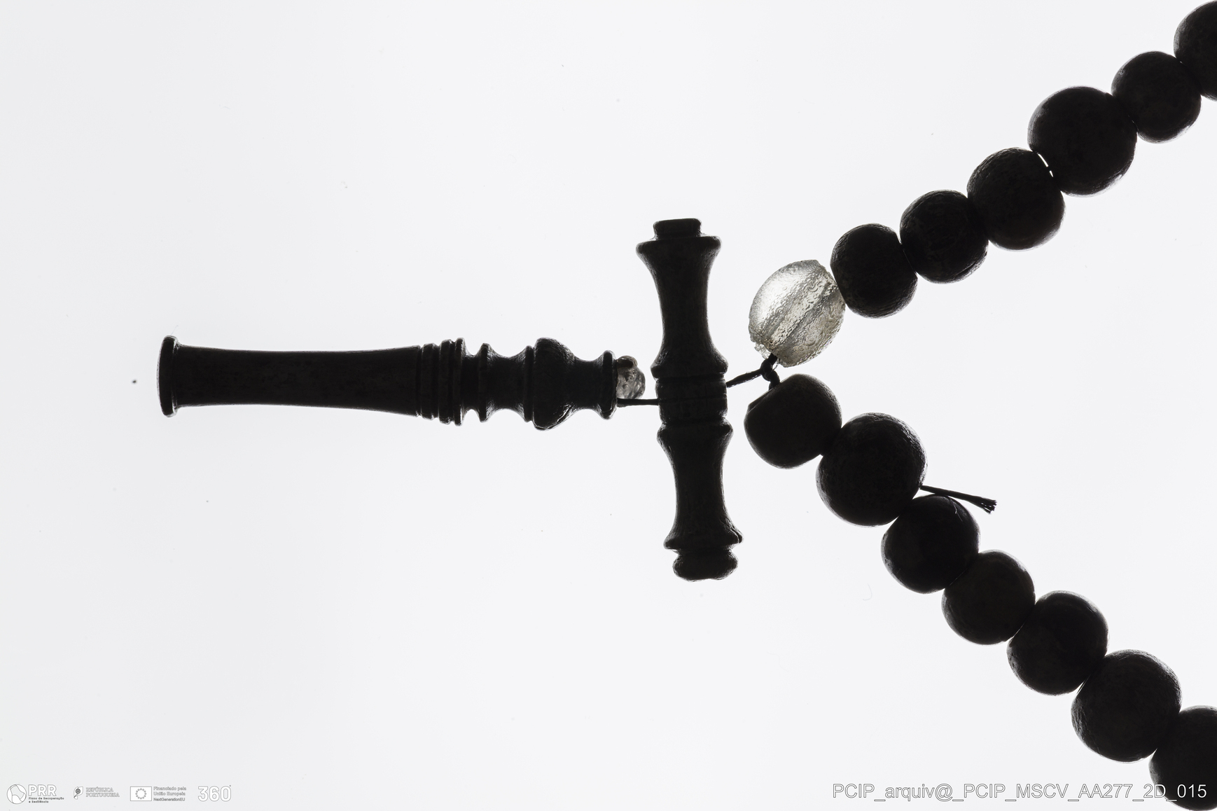 Matéria/Técnica: Osso, vidro e madeira; Cronologia: Século XVI-XVII; Autoria: Desconhecida; Dimensões: Comprimento: 840mm.