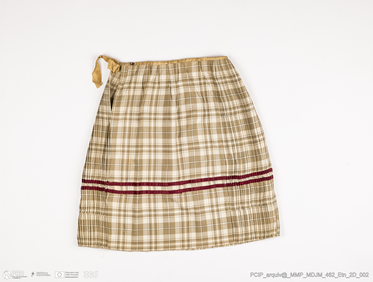 Matéria/Técnica: Tecido de Caxemira; Cronologia: Séc. XX; Autoria: Desconhecida; Dimensões: Altura: 58 cm x Roda: 4 panos.