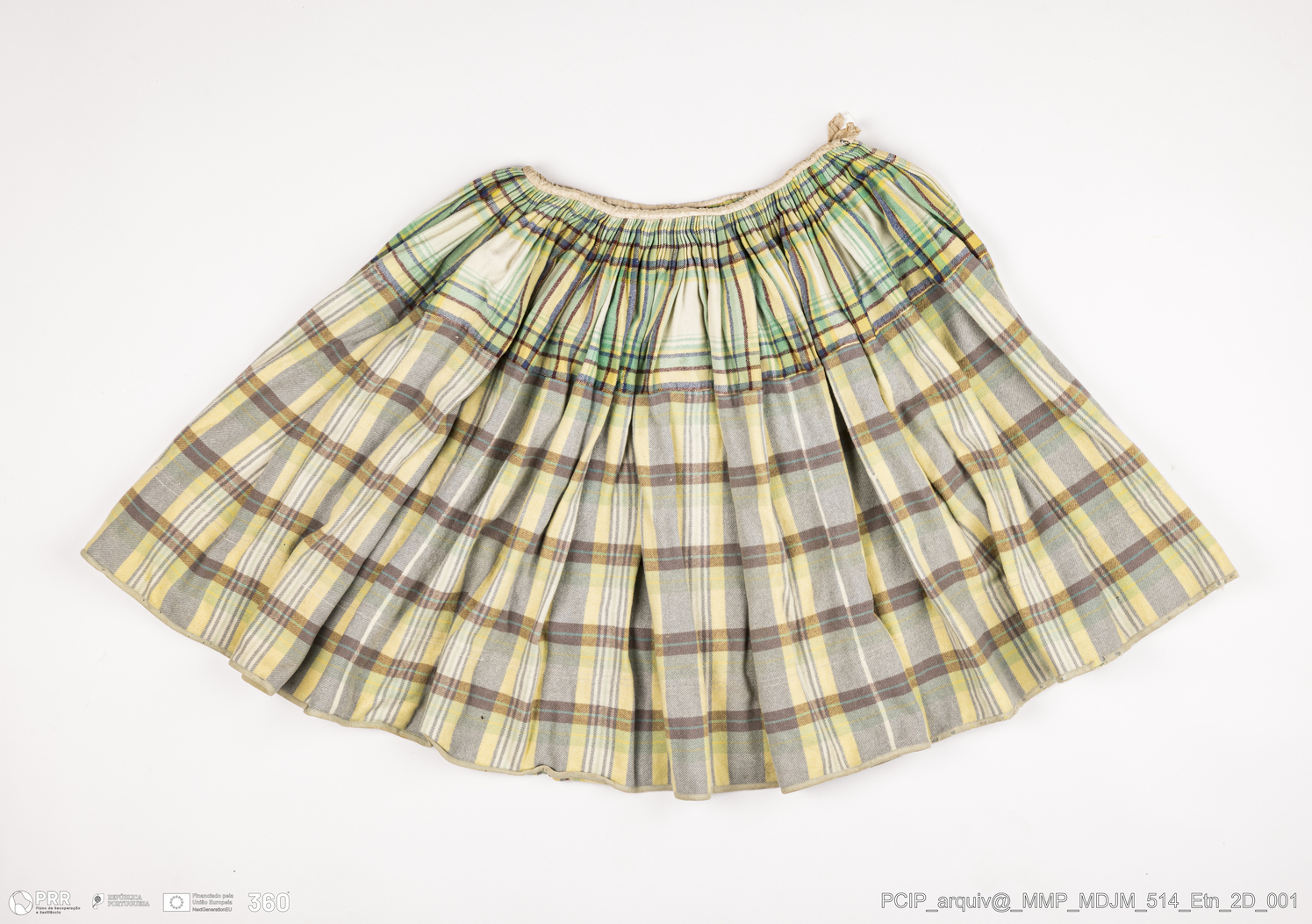 Matéria/Técnica: Escocês; Cronologia: Séc. XX; Autoria: Desconhecida; Dimensões: Altura: 62 cm x Roda: 320 cm.