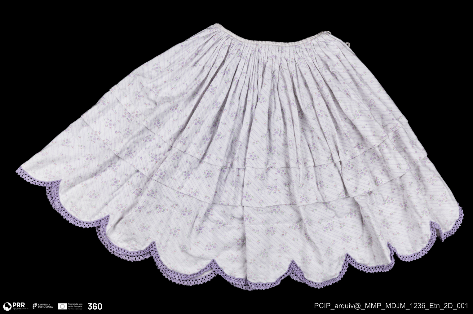 Matéria/Técnica: Algodão (flanela); Cronologia: Séc. XX; Autoria: Desconhecida; Dimensões: Altura: 78 cm x Roda: 266 cm.
