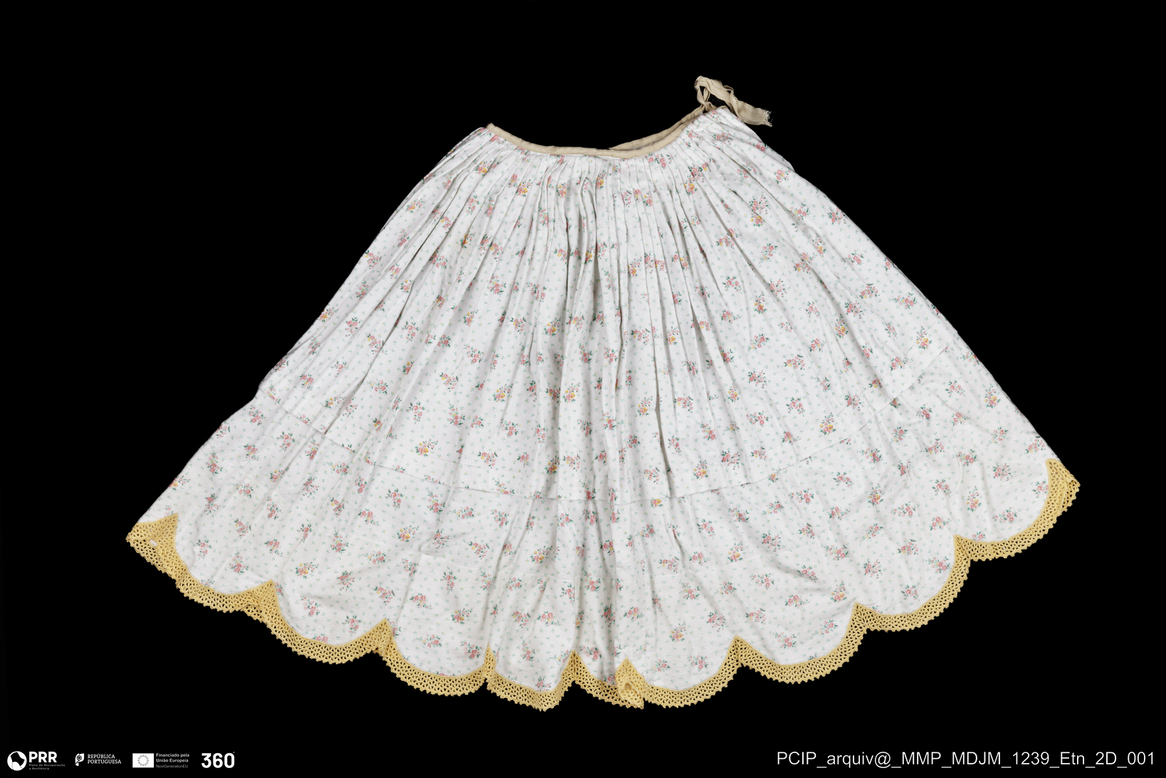 Matéria/Técnica: Algodão (flanela); Cronologia: Séc. XX; Autoria: Desconhecida; Dimensões: Altura: 74 cm x Roda: 268 cm.