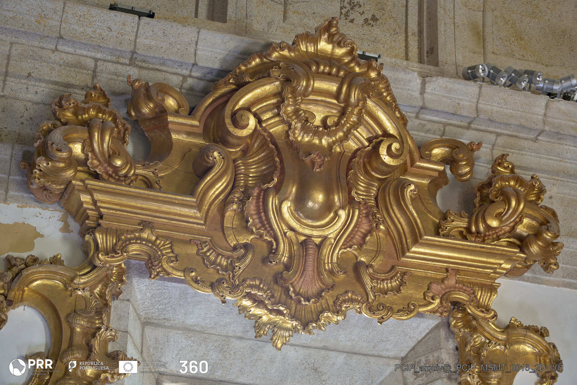 Matéria/Técnica: Madeira entalhada e dourada / Entalhamento e douramento; Cronologia: 1758-1761; Autoria: André Soares; Dimensões (cm): 380 x 595 x 75.