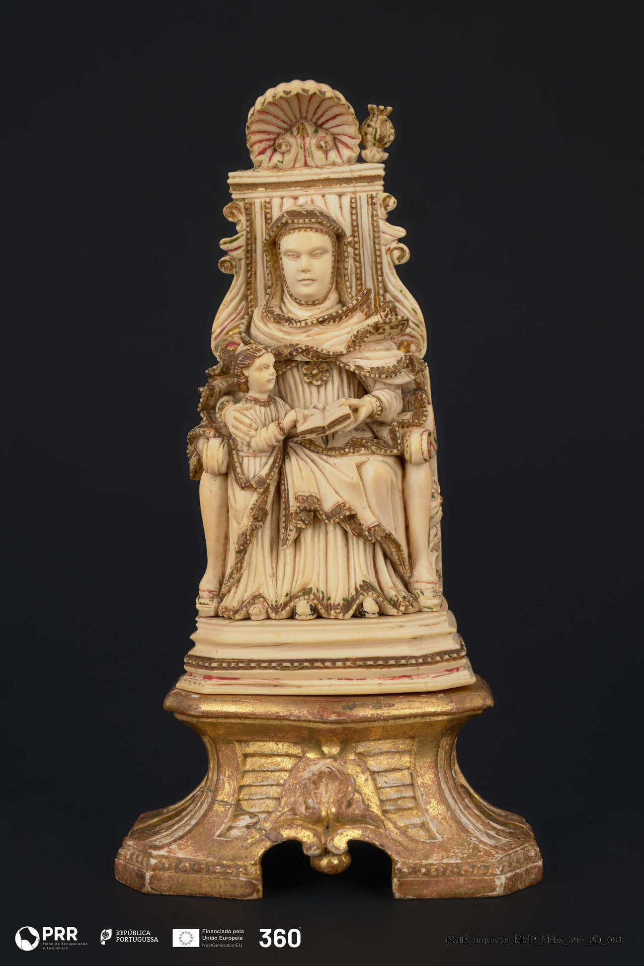 Matéria/Técnica: Marfim esculpido; madeira entalhada e estofada; prata fundida e repuxada; Cronologia: Desconhecida; Autoria: Artífice de escultura em marfim do sub-continente Indiano; Encomenda ocidental e execução Indo-Portuguesa; Dimensões: Desconhecidas.