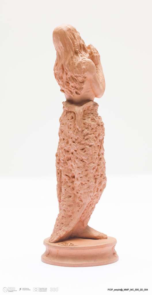 Matéria/Técnica: Terracota modelada. Monocozedura; Cronologia: século XX; Autoria: Francisco Elias / Caldas da Rainha, Portugal; Dimensões (cm): Altura: 12; Largura: 4,5; Comprimento: 4,5.