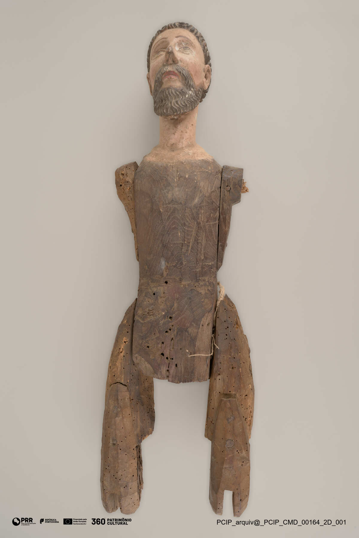 Matéria/Técnica: Desconhecida; Cronologia: Final do século XVII ou início do século XVIII.; Autoria: Desconhecida; Dimensões: Altura: 73 cm; Largura: 23,5 cm; Profundidade: 13,5 cm.