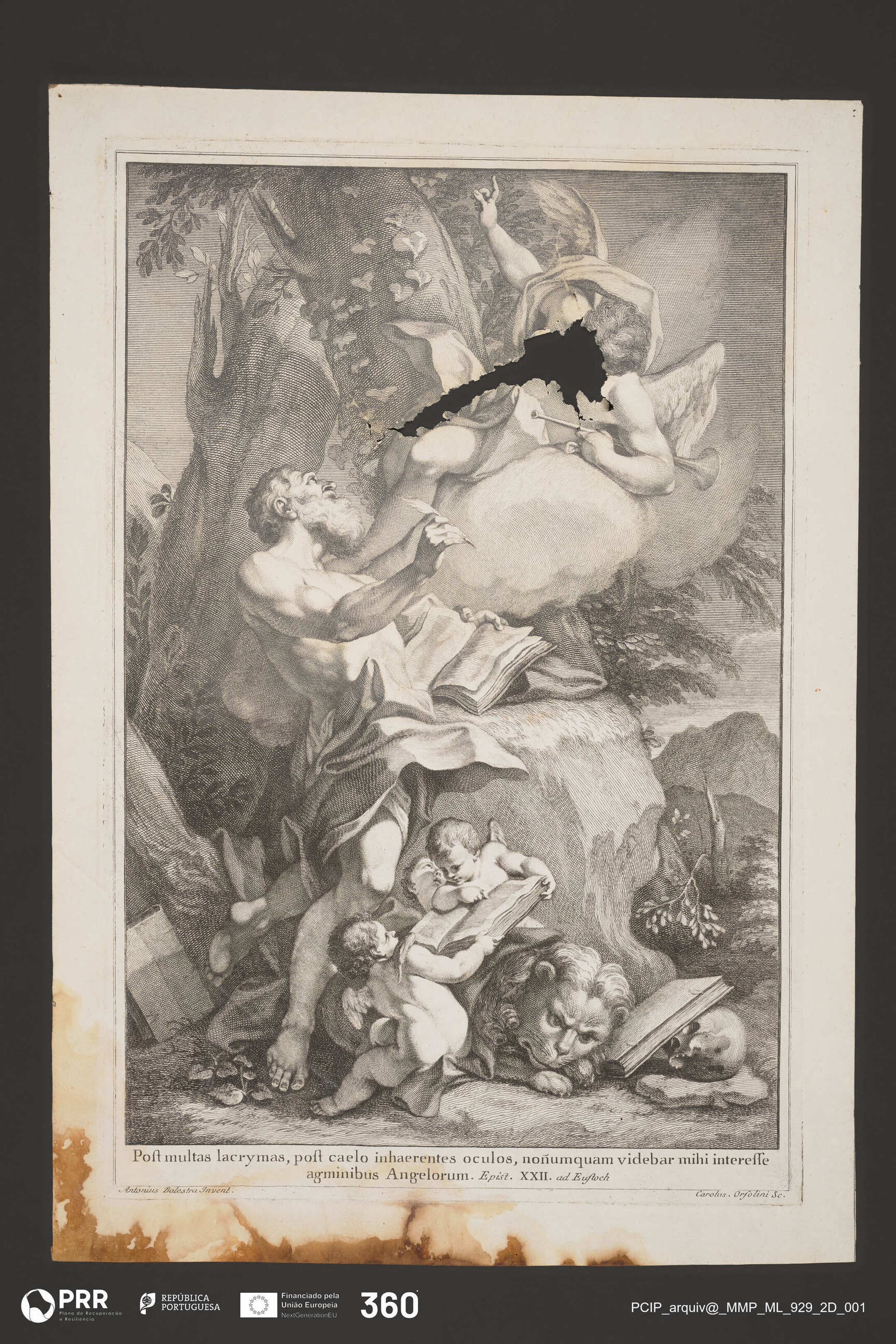 Matéria/Técnica: Desconhecida; Cronologia: Século XVIII; Autoria: Balestra, Antonius ( desenho de); Carolus Orfolini; Dimensões (cm): Altura: 36 x Largura: 24.