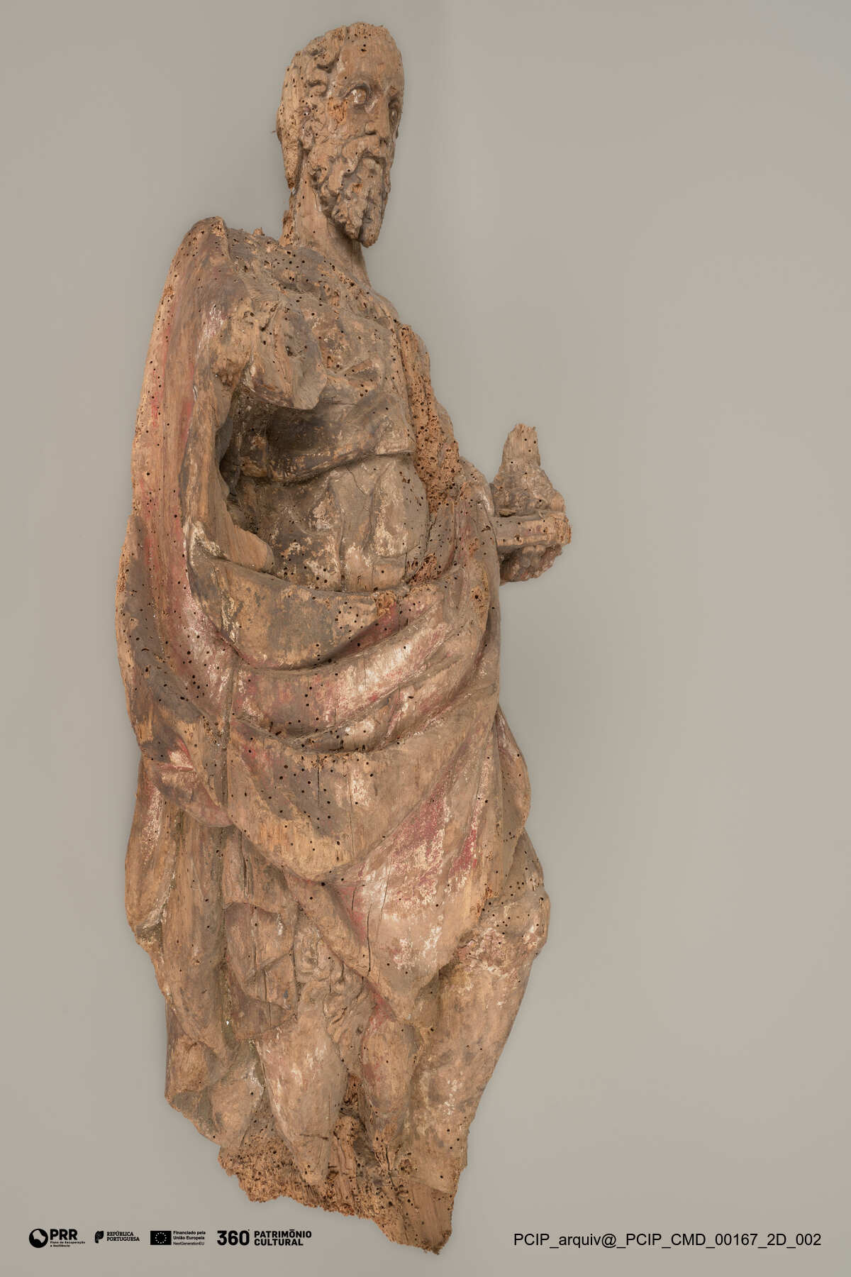 Matéria/Técnica: Desconhecida; Cronologia: Século XVI; Autoria: Desconhecida; Dimensões: Altura: 108 cm; Largura: 39 cm; Profundidade: 28 cm.