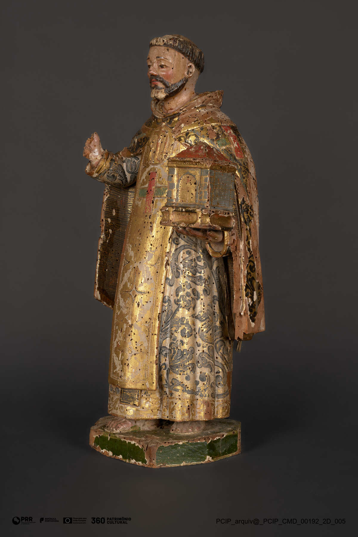 Matéria/Técnica: Desconhecida; Cronologia: XVII; Autoria: Desconhecida; Dimensões: Altura: 51 cm; Largura: 26 cm; Profundidade: 16,5 cm.