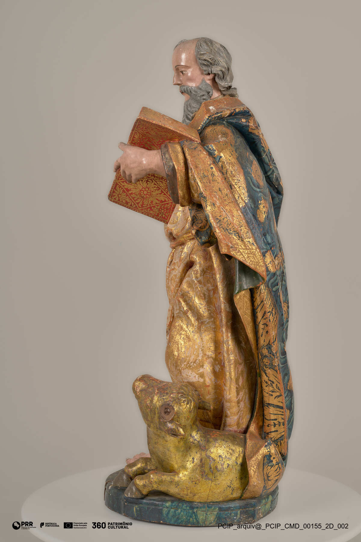 Matéria/Técnica: Desconhecida; Cronologia: 1636; Autoria: Jerónimo Garcia; Dimensões: Altura: 75 cm; Largura: 33 cm; Profundidade: 28 cm.