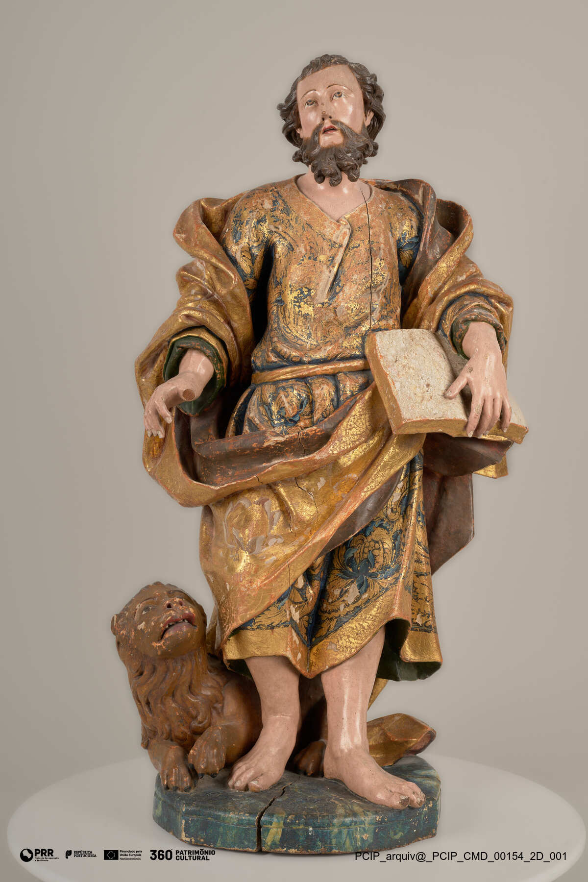 Matéria/Técnica: Desconhecida; Cronologia: 1636; Autoria: Jerónimo Garcia; Dimensões: Altura: 74 cm; Largura: 39 cm; Profundidade: 25 cm.