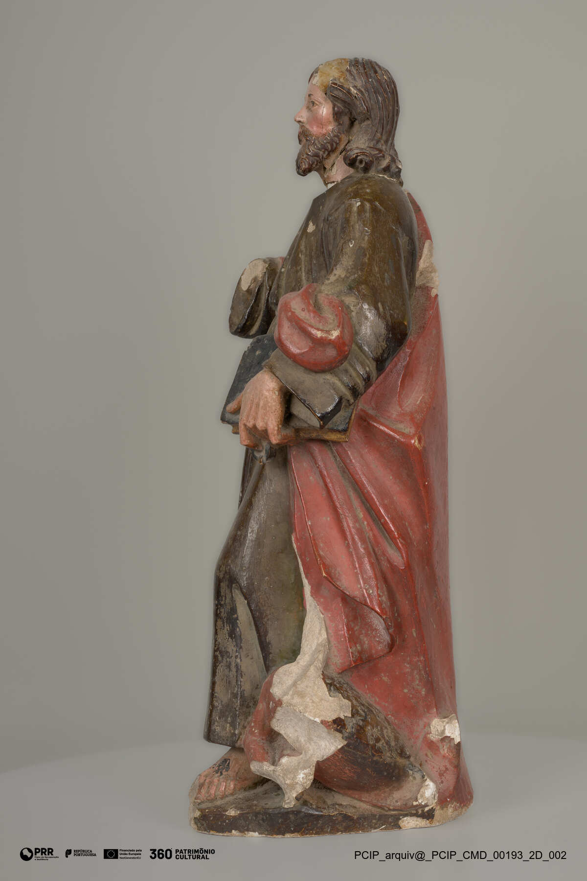 Matéria/Técnica: Desconhecida; Cronologia: Início do século XVII; Autoria: Desconhecida; Dimensões: Altura: 47 cm; Largura: 22 cm; Profundidade: 15 cm.