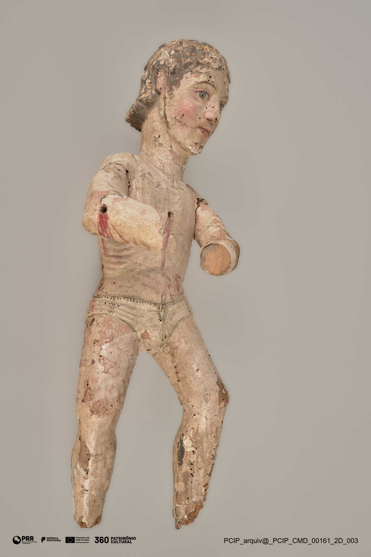 Matéria/Técnica: Desconhecida; Cronologia: Século XVI ou início do século XVII.; Autoria: Desconhecida; Dimensões: Altura: 69 cm; Largura: 30 cm; Profundidade: 21,5 cm.