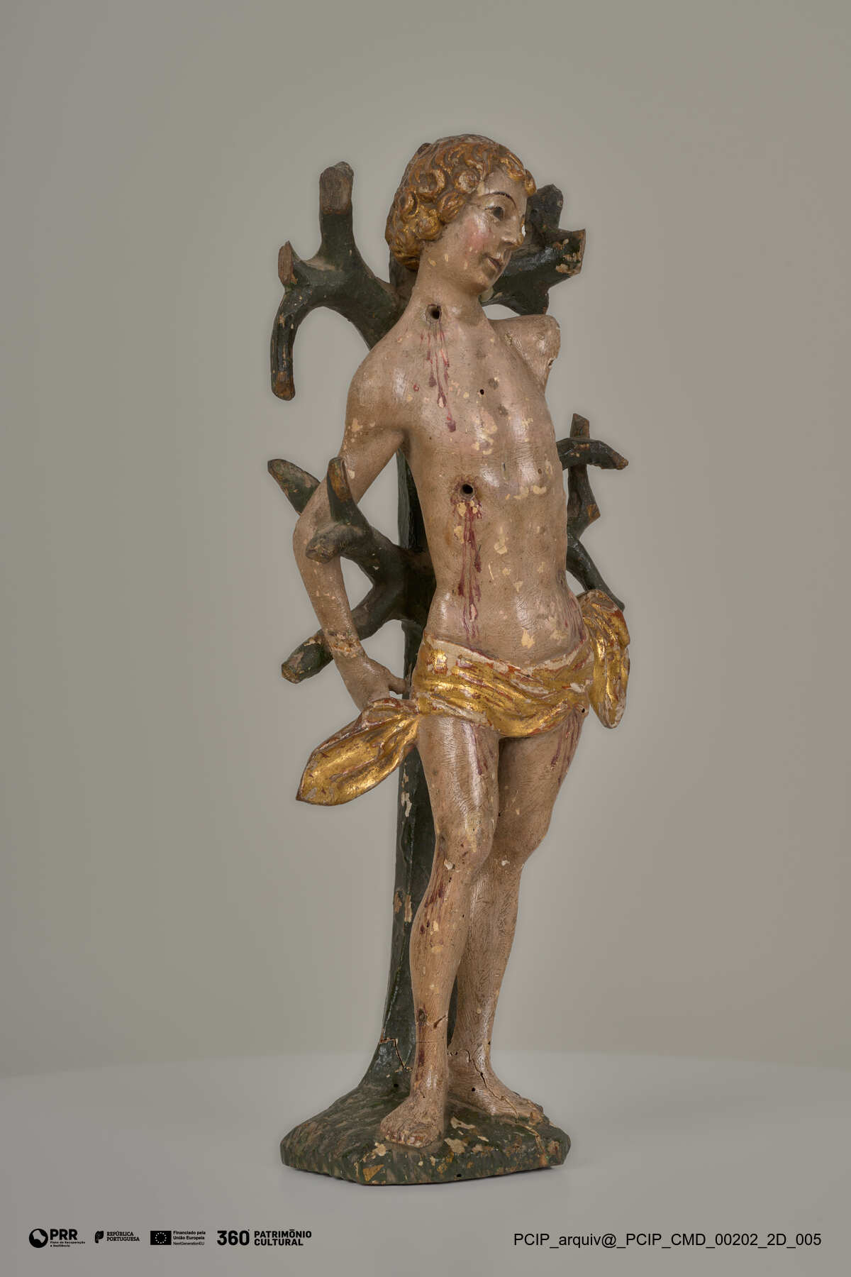 Matéria/Técnica: Desconhecida; Cronologia: Final do século XVI ou início do século XVII; Autoria: Desconhecida; Dimensões: Altura: 37 cm; Largura: 15 cm; Profundidade: 6,5 cm.