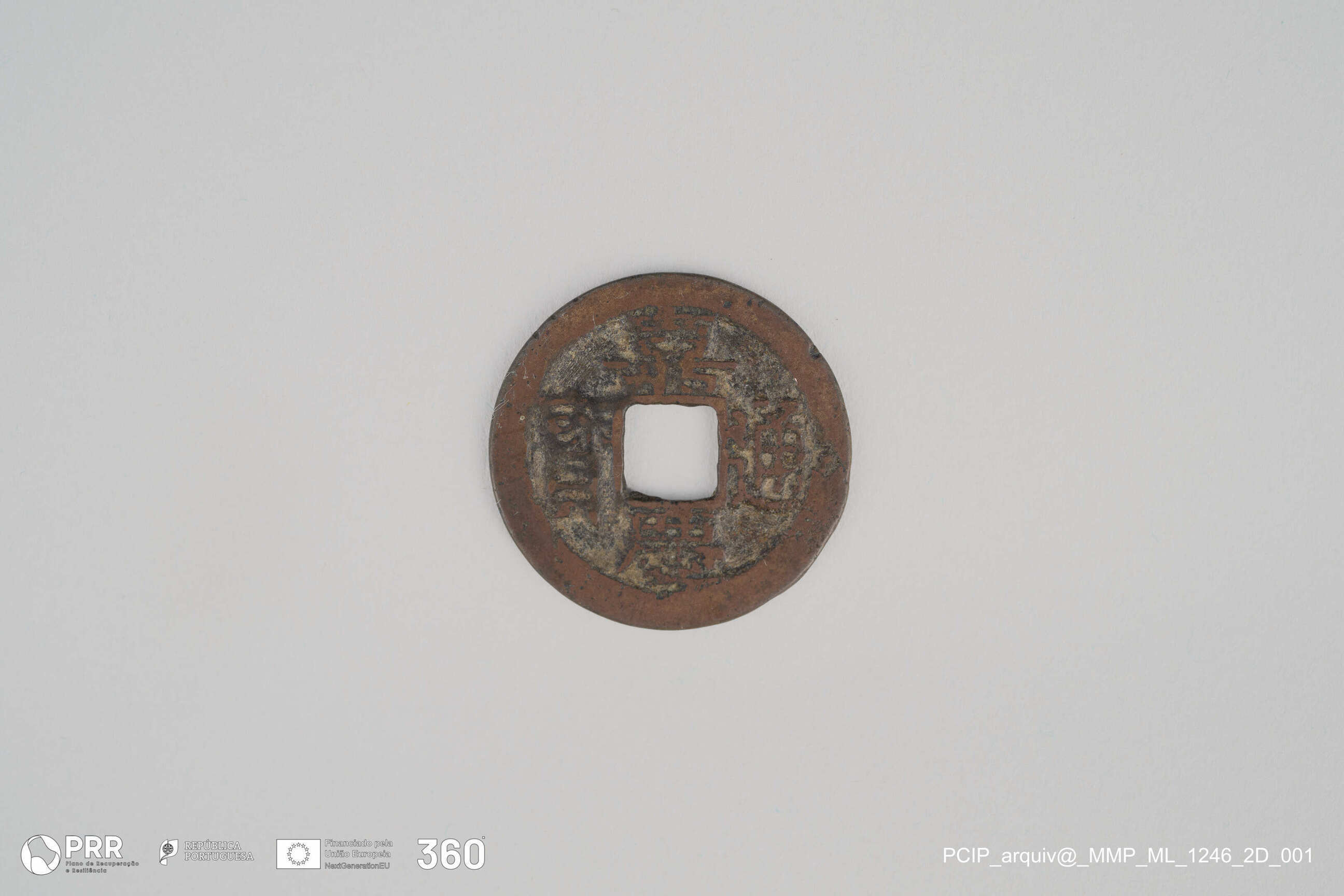 Matéria/Técnica: Cunhagem; Cronologia: Desconhecida; Autoria: Desconhecida; Dimensões (cm): Diâmetro: 2,5.