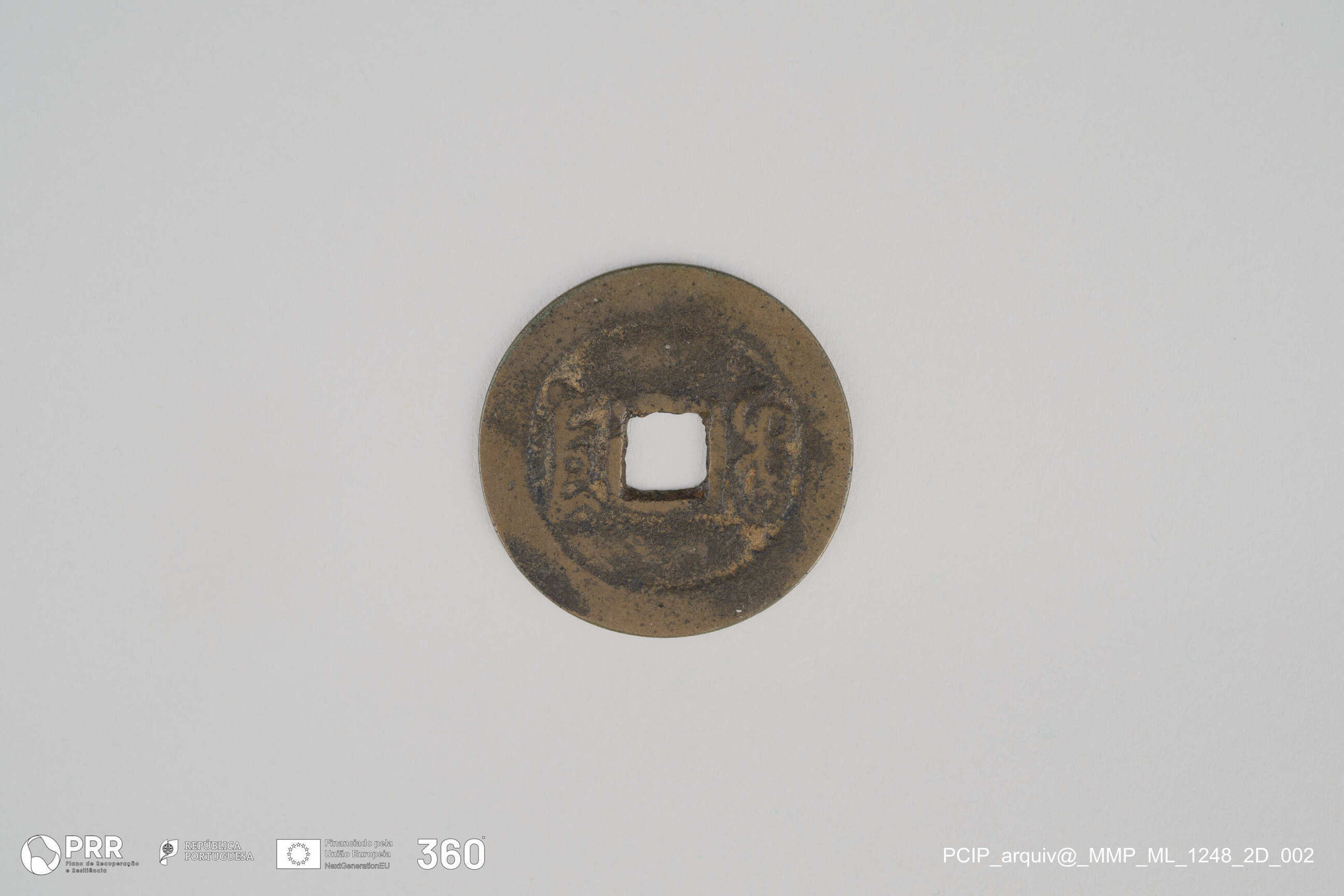 Matéria/Técnica: Cunhagem; Cronologia: Desconhecida; Autoria: Desconhecida; Dimensões (cm): Diâmetro: 2,6.
