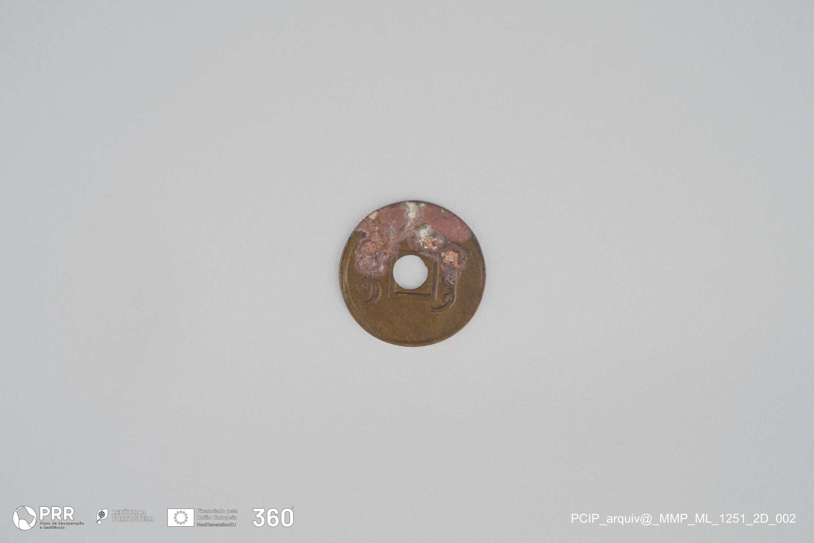Matéria/Técnica: Cunhagem; Cronologia: Desconhecida; Autoria: Desconhecida; Dimensões (cm): Diâmetro: 1,7.