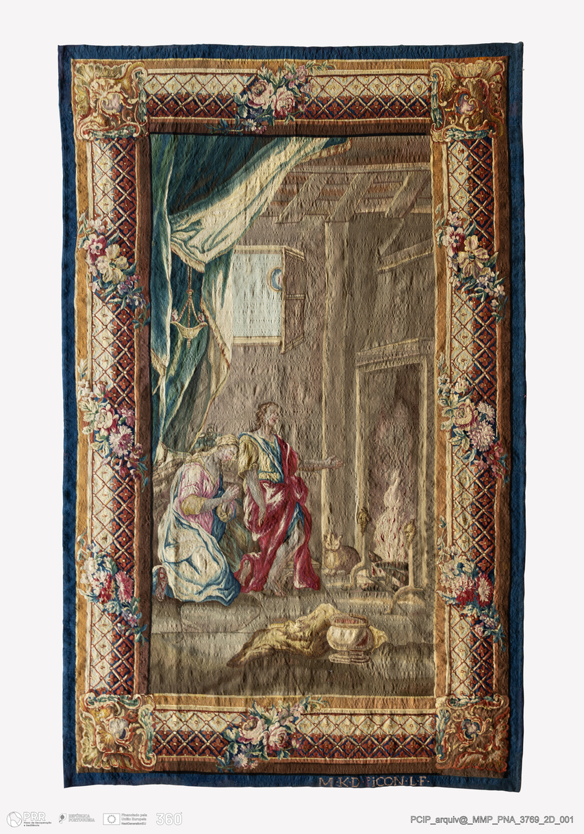 Matéria/Técnica: Tapeçaria de liço; Cronologia: Século XVIII; Autoria: Picon, Jean-François; Dimensões: Altura: 294 cm x Largura: 180 cm.