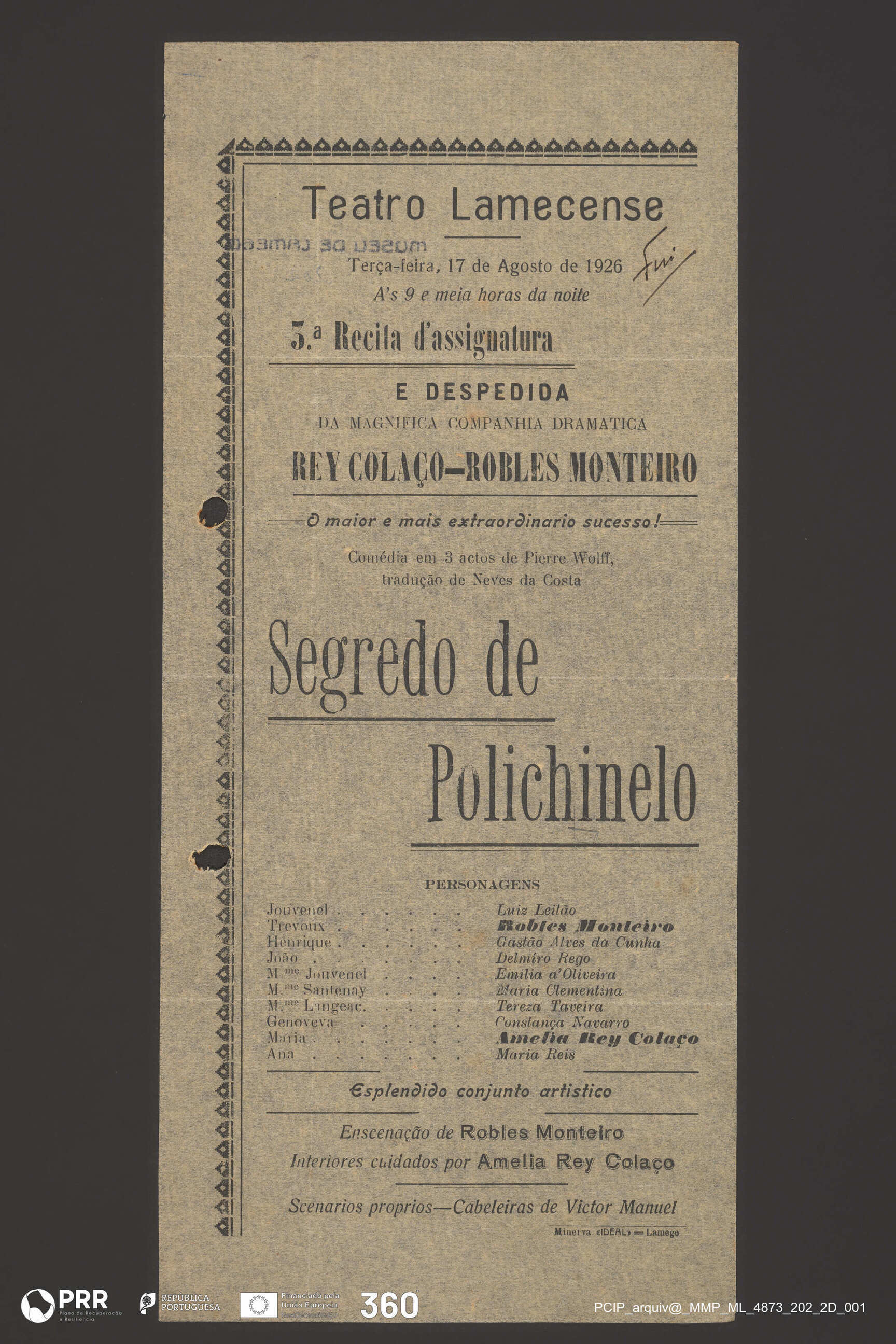 Matéria/Técnica: Impressão; Cronologia: 1926; Autoria: Desconhecida; Dimensões (cm): Altura: 30,1 x Comprimento: 13,5.