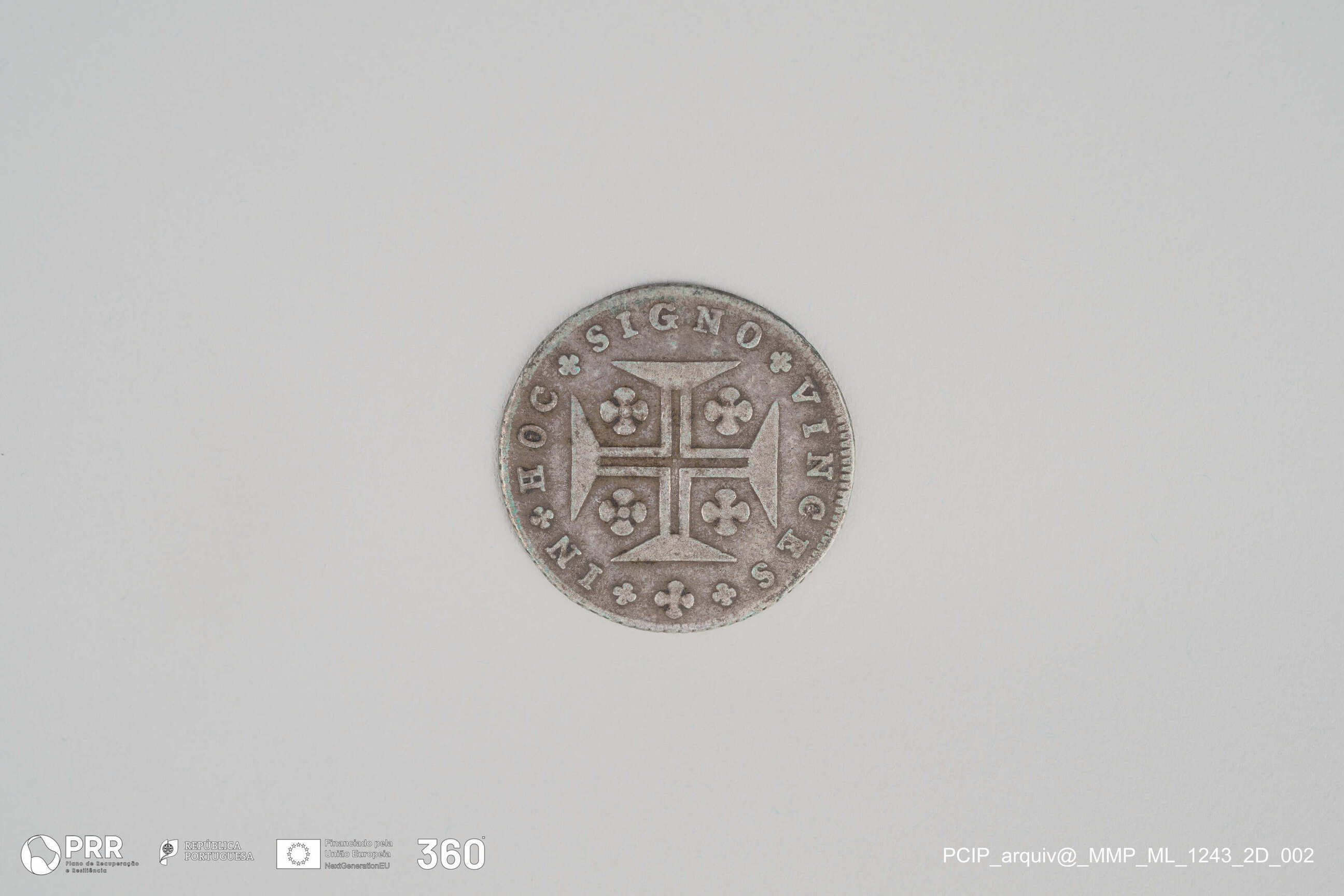 Matéria/Técnica: Cunhagem; Cronologia: 1786-1799; Autoria: Desconhecida; Dimensões (cm): Diâmetro: 2,4.