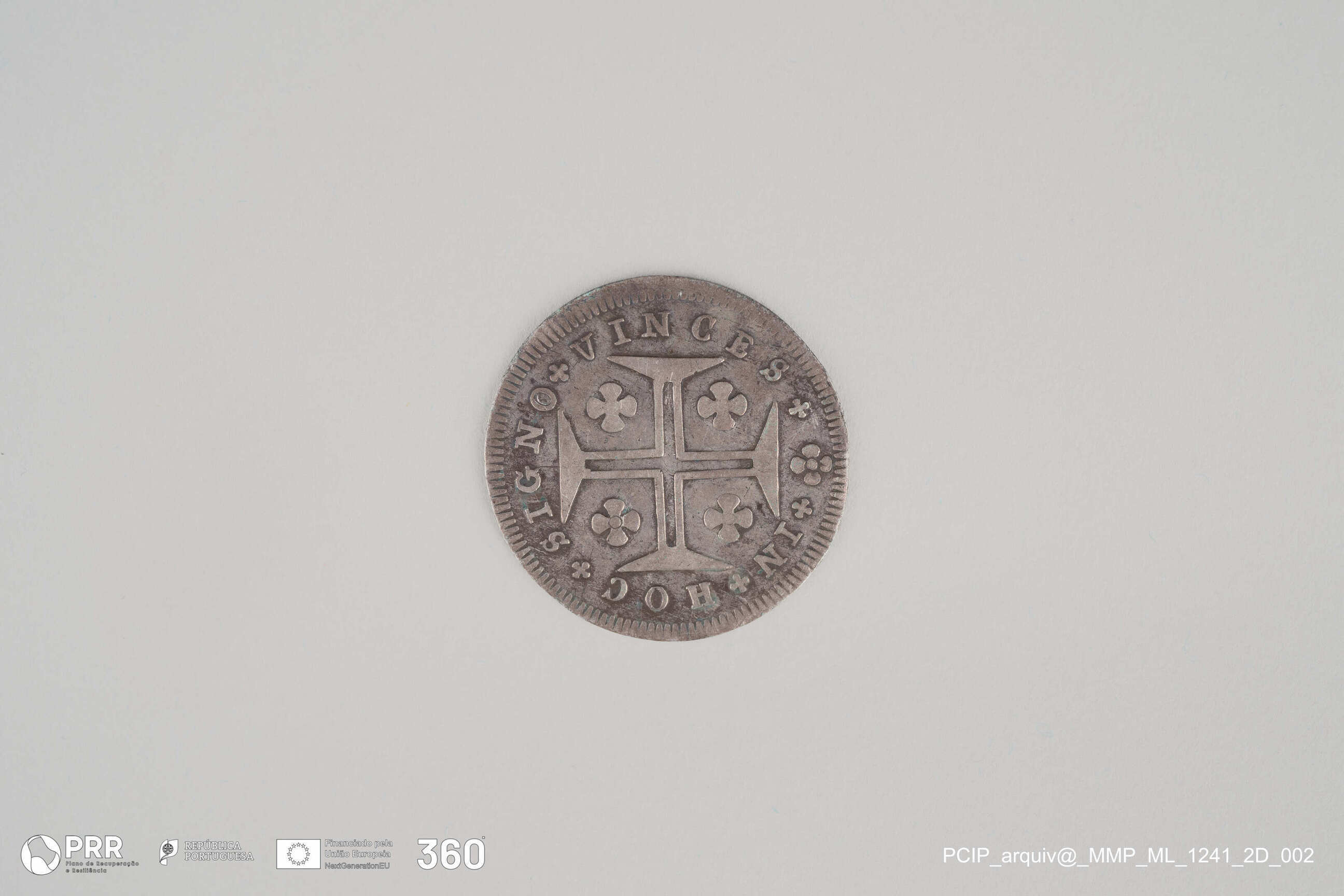 Matéria/Técnica: Cunhagem; Cronologia: 1777-1786; Autoria: Desconhecida; Dimensões (cm): Diâmetro: 2,4.