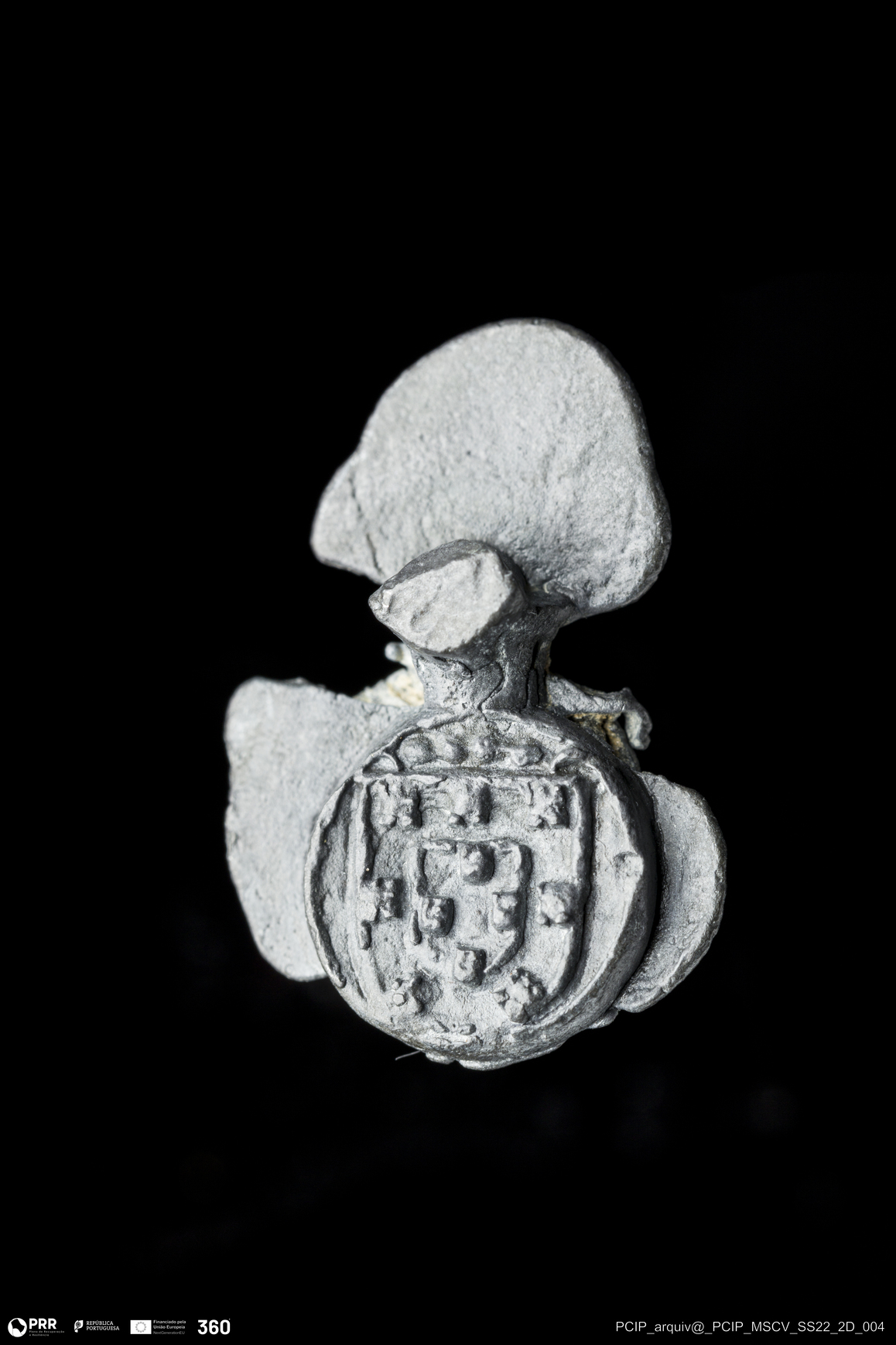 Matéria/Técnica: Chumbo; Cronologia: Indeterminada; Autoria: Desconhecida; Dimensões: Comprimento: 25mm; Largura: 18mm; Espessura: 10mm.