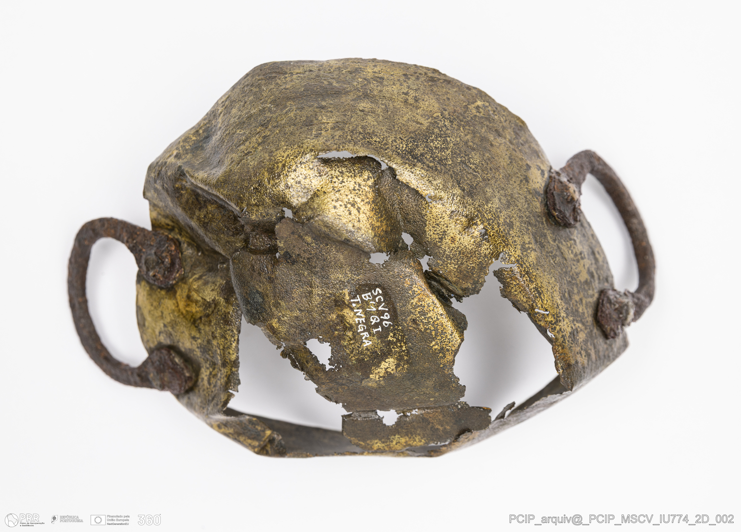 Matéria/Técnica: Metal; Cronologia: Século XVII; Autoria: Desconhecida; Dimensões: Altura: 90mm; Largura: 180mm.