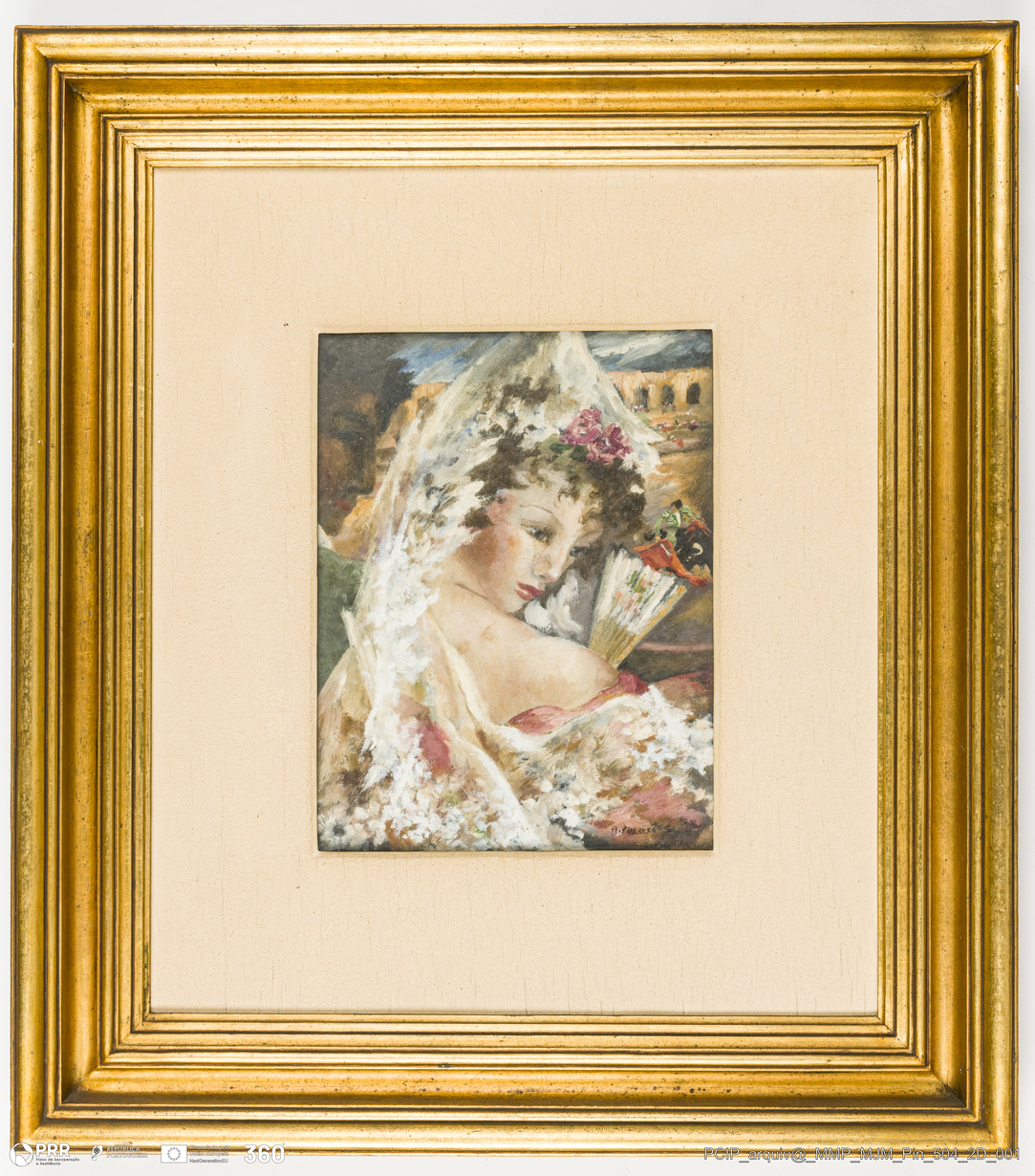 Matéria/Técnica: Óleo sobre papel colado em madeira; Cronologia: Desconhecida; Autoria: A. Palácios; Dimensões: 33,7 x 26 cm.