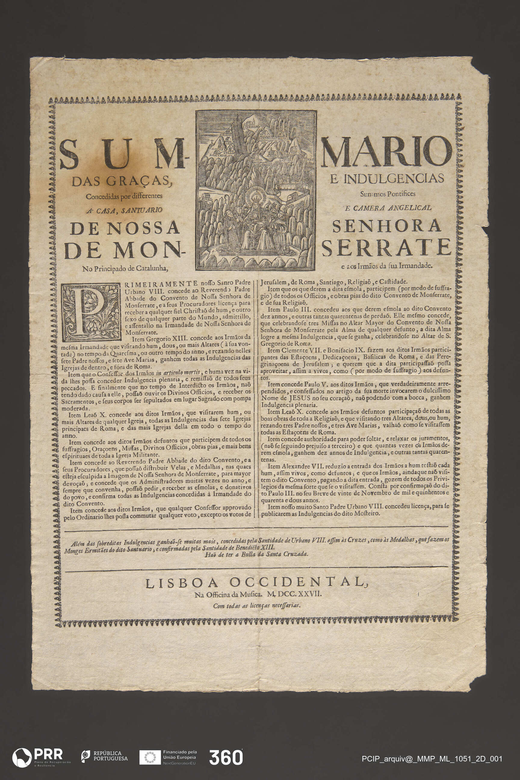 Sumario das Graças e Indulgências - Nossa Senhora do Monserrate