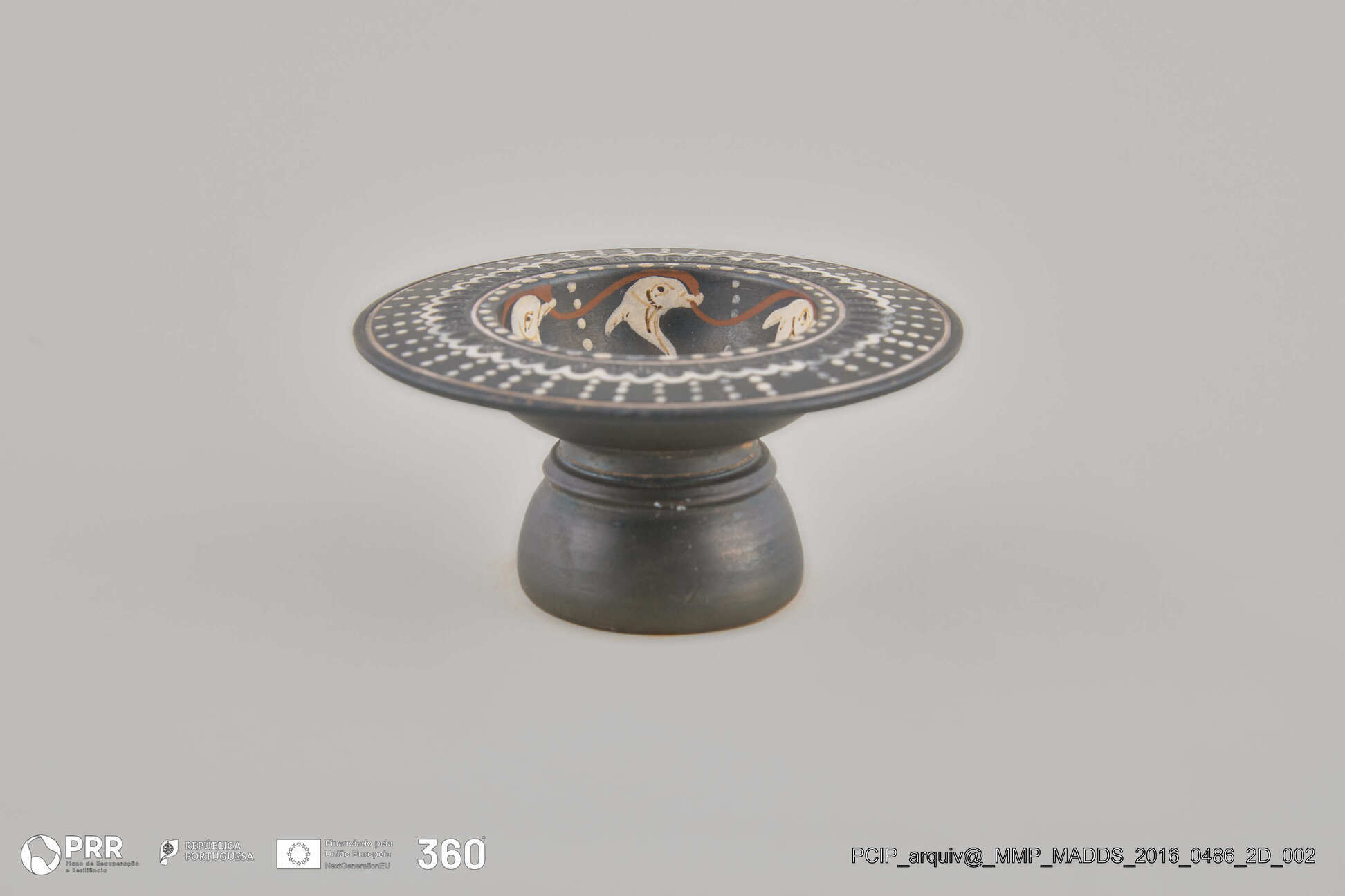 Matéria/Técnica: Cerâmica; Cronologia: Cerca de 330 - 300 a.C; Autoria: Desconhecida; Dimensões (cm): 4 x 10 x 10.