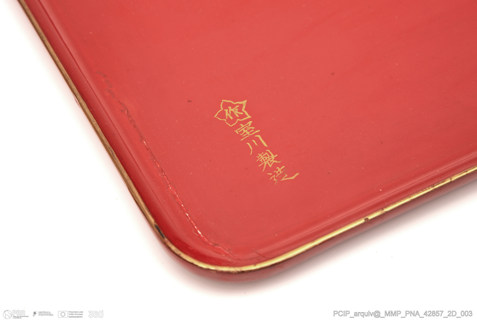 Matéria/Técnica: Madeira, laca; Cronologia: Século XIX; Autoria: Desconhecida; Dimensões (cm): Altura: 2; Largura: 38,2; Profundidade: 26,7.