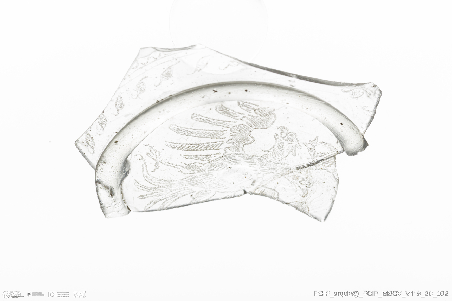 Matéria/Técnica: Vidro; Cronologia: Século XVII; Autoria: Desconhecida; Dimensões: Diâmetro base: 59mm.