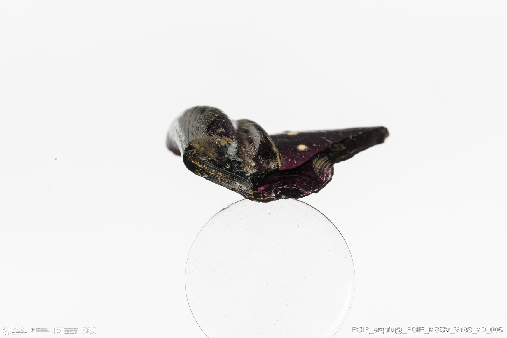 Matéria/Técnica: Vidro; Cronologia: Século XVII; Autoria: Desconhecida; Dimensões: Diâmetro bordo: 80mm.