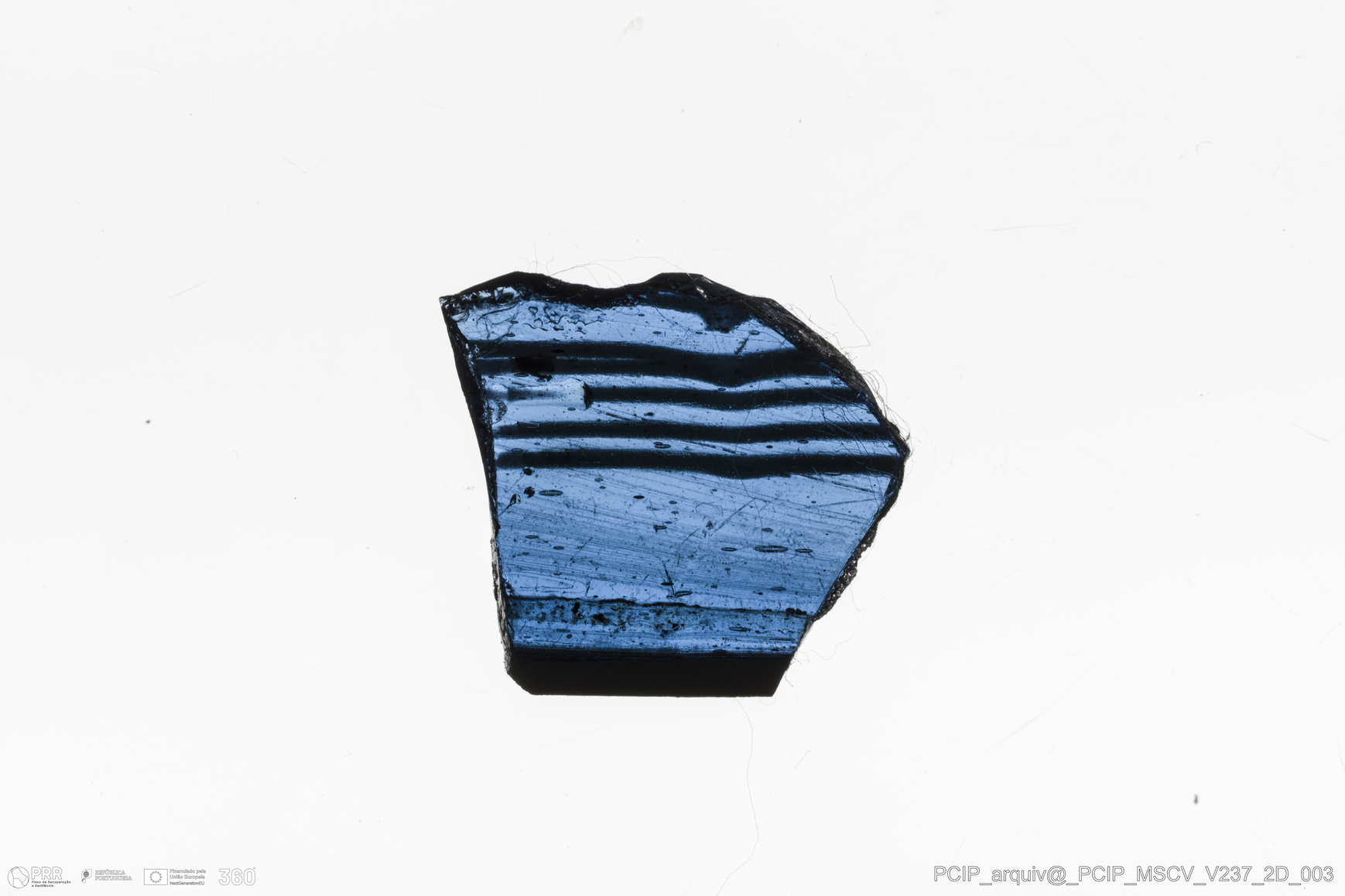 Matéria/Técnica: Vidro; Cronologia: Século XVII; Autoria: Desconhecida; Dimensões: Comprimento: 14mm; Largura: 13mm.