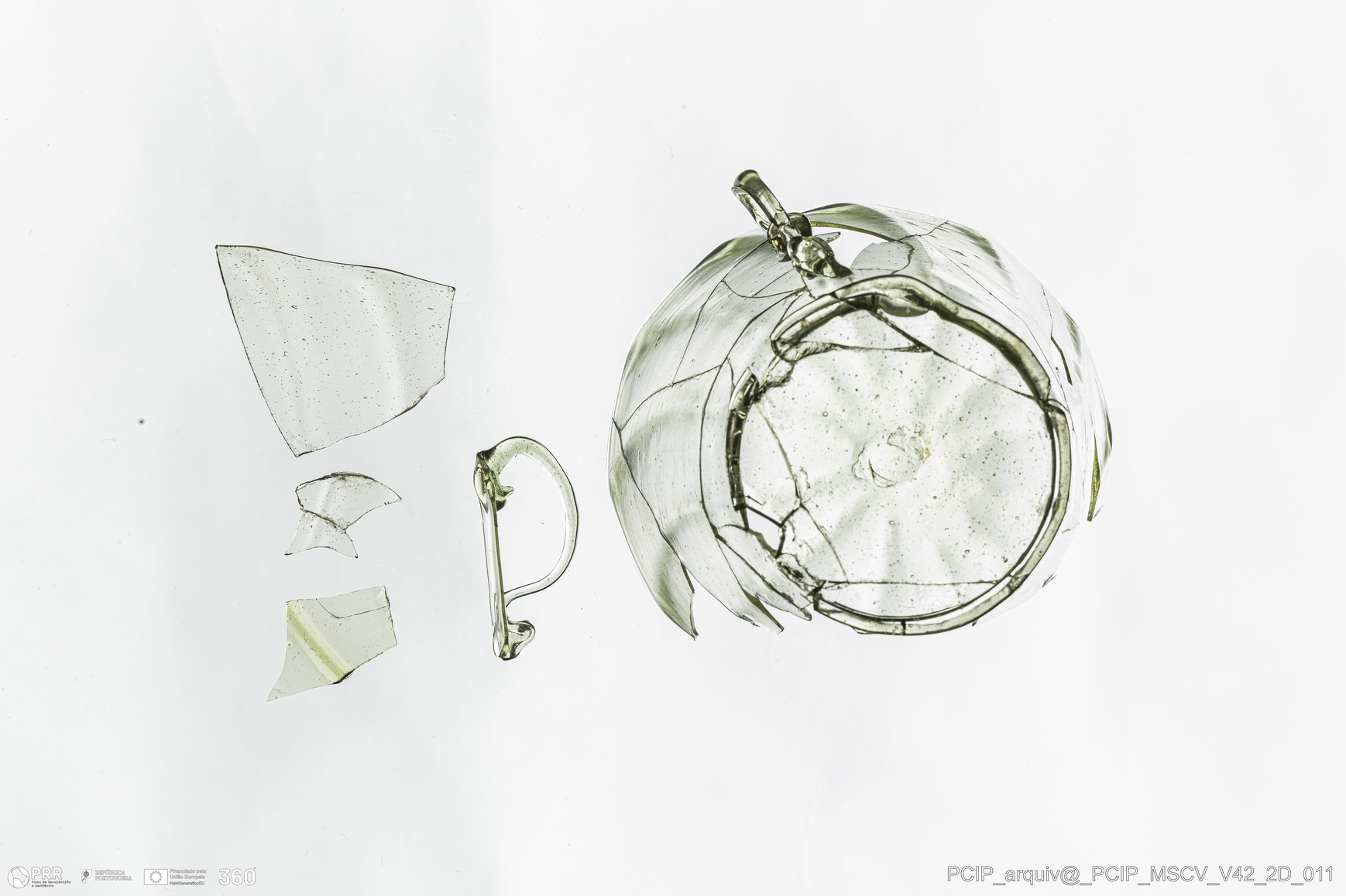 Matéria/Técnica: Vidro; Cronologia: Século XVII; Autoria: Desconhecida; Dimensões: Diâmetro bordo: 100mm; Diâmetro base: 59mm; Altura: 78mm.