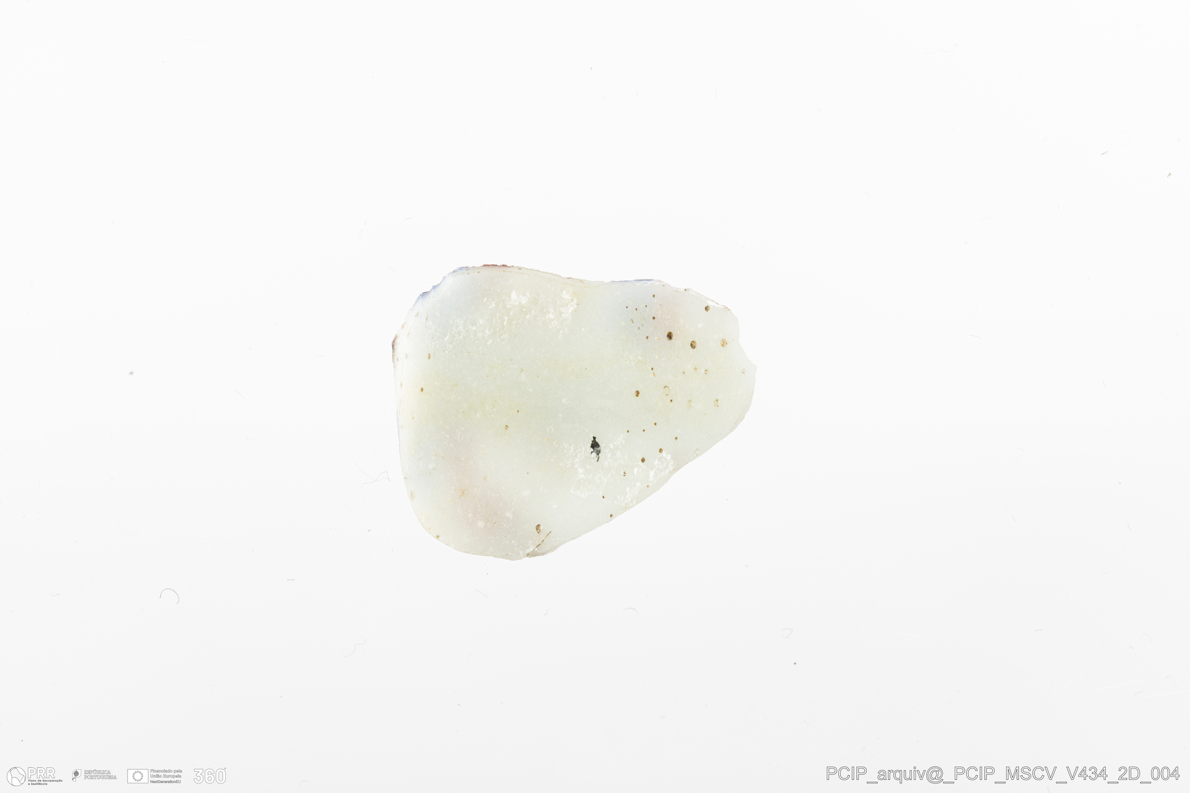 Matéria/Técnica: Vidro; Cronologia: Século XVII; Autoria: Desconhecida; Dimensões: Comprimento: 17mm; Largura: 15mm.