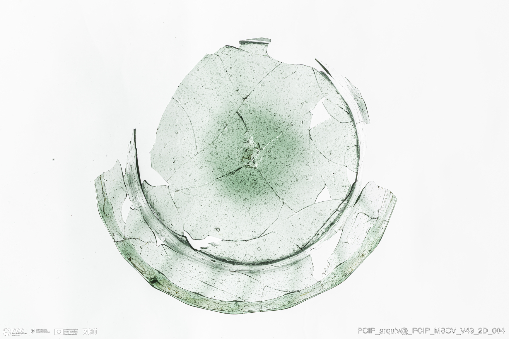 Matéria/Técnica: Vidro; Cronologia: Século XVII; Autoria: Desconhecida; Dimensões: Diâmetro bordo: 170mm; Diâmetro base: 95mm; Altura: 60mm.