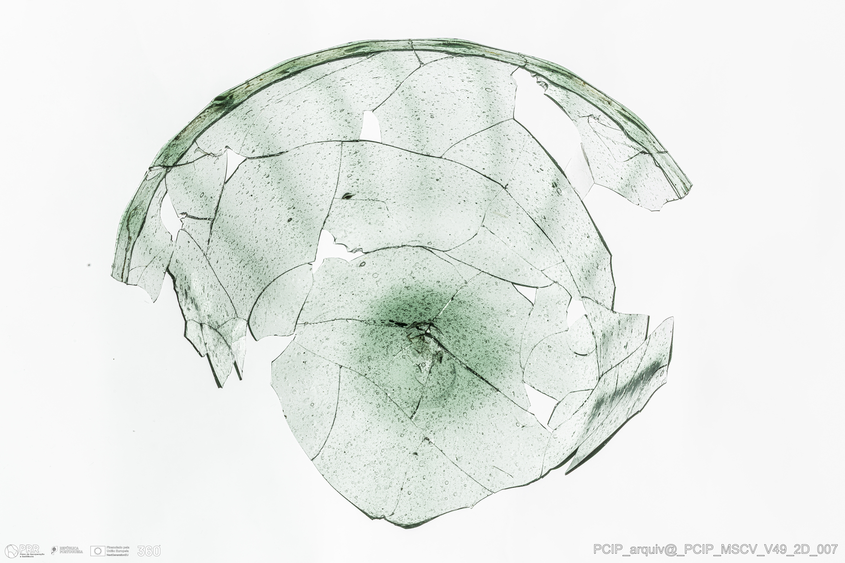 Matéria/Técnica: Vidro; Cronologia: Século XVII; Autoria: Desconhecida; Dimensões: Diâmetro bordo: 170mm; Diâmetro base: 95mm; Altura: 60mm.